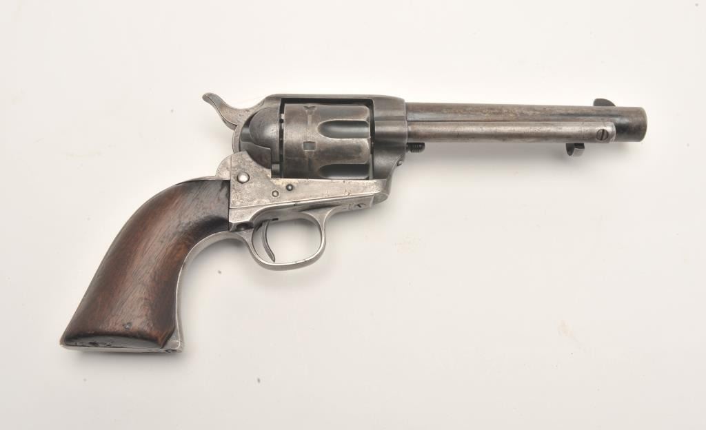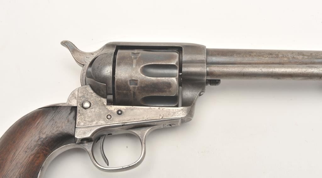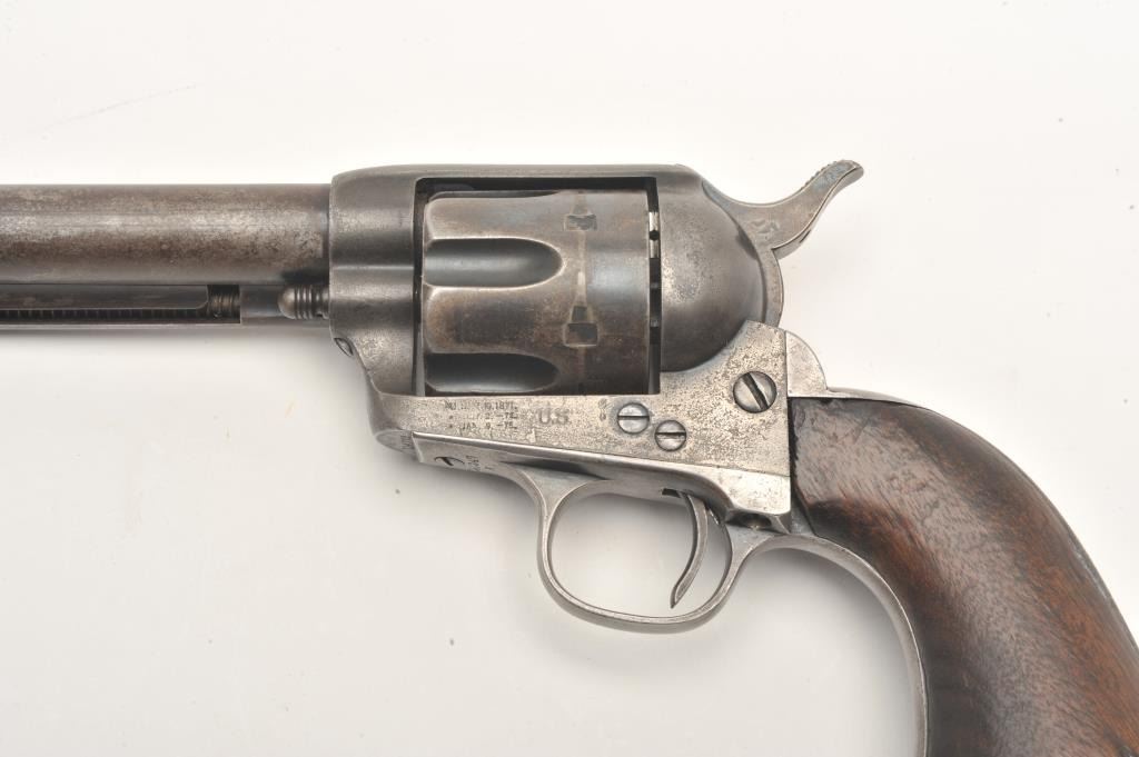 Lot 825 Colt U.S. Artillery Model SAA revolver, .45 caliber, 5.5” barrel, blued finish, smooth wood grips,