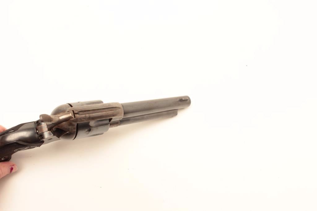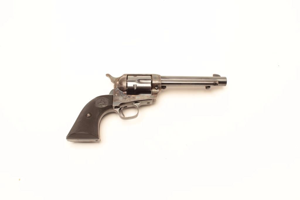 Lot 826 Colt SAA revolver, .38 Special caliber, 5.5” barrel, blued and case hardened finish, checkered bla