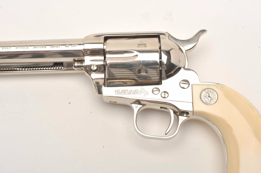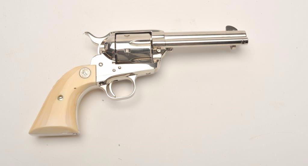 Lot 827 Colt 3rd Generation SAA Armoury Model revolver, .45 ACP caliber, 4.75” barrel, factory nickel fin