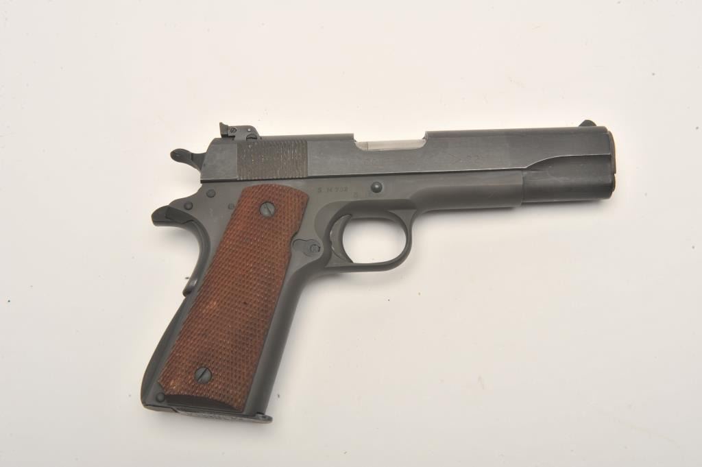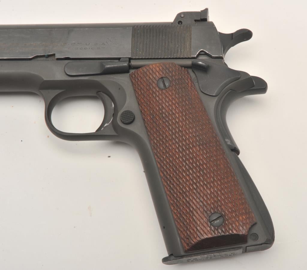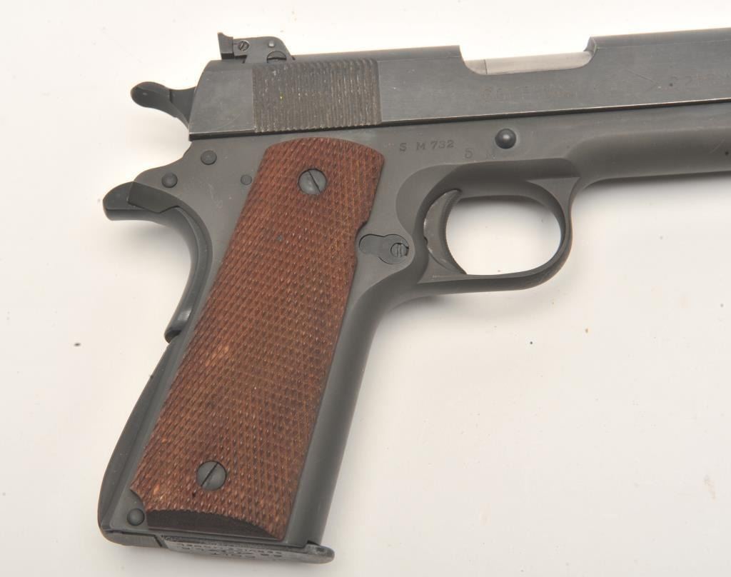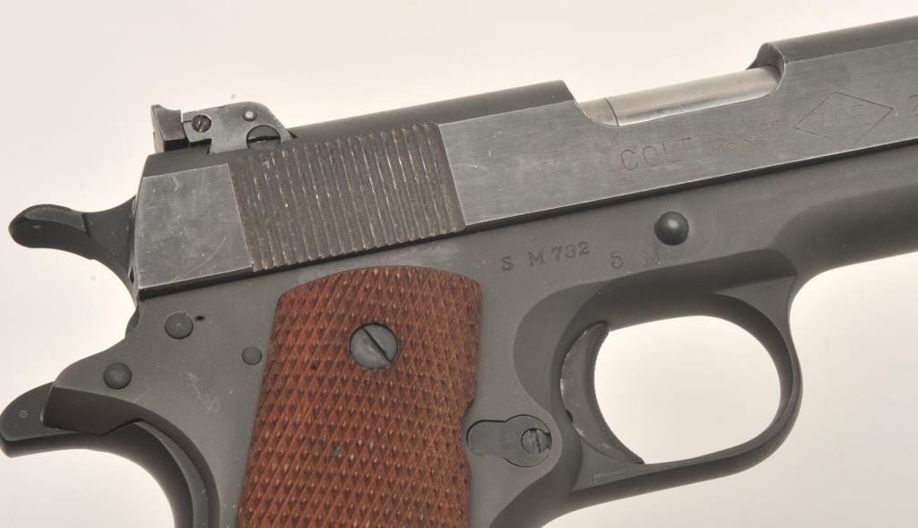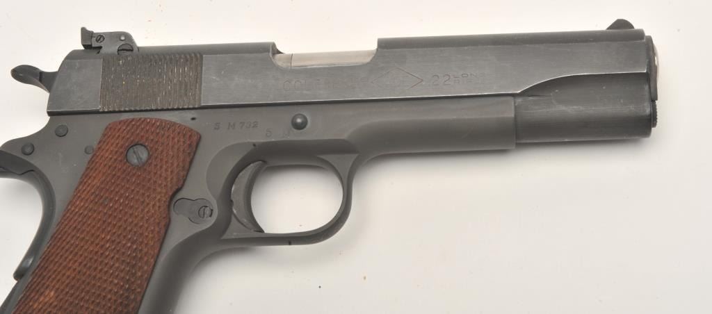 Colt Service Model Ace semi-automatic pistol, .22LR caliber, 5” barrel, parkerized finish, checkered wood grips, S/N SM 732, in overall fine to excellent condition displaying approximately 98%+ original finish, finebore, crisp action, sharp markings and fine grips. (C&R/PPT). Est.: $2,000-$4,000.