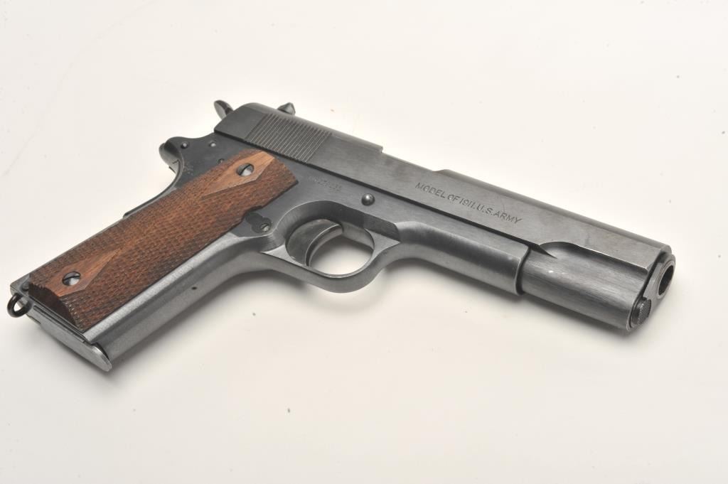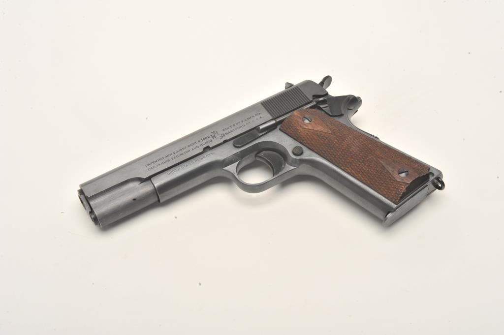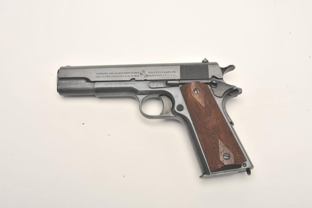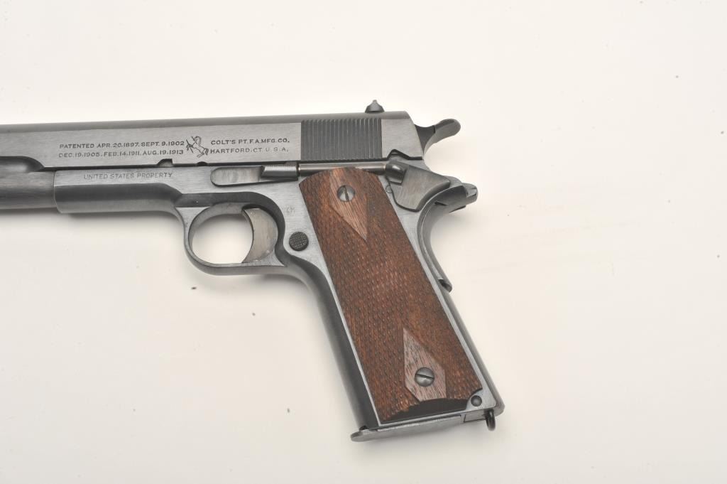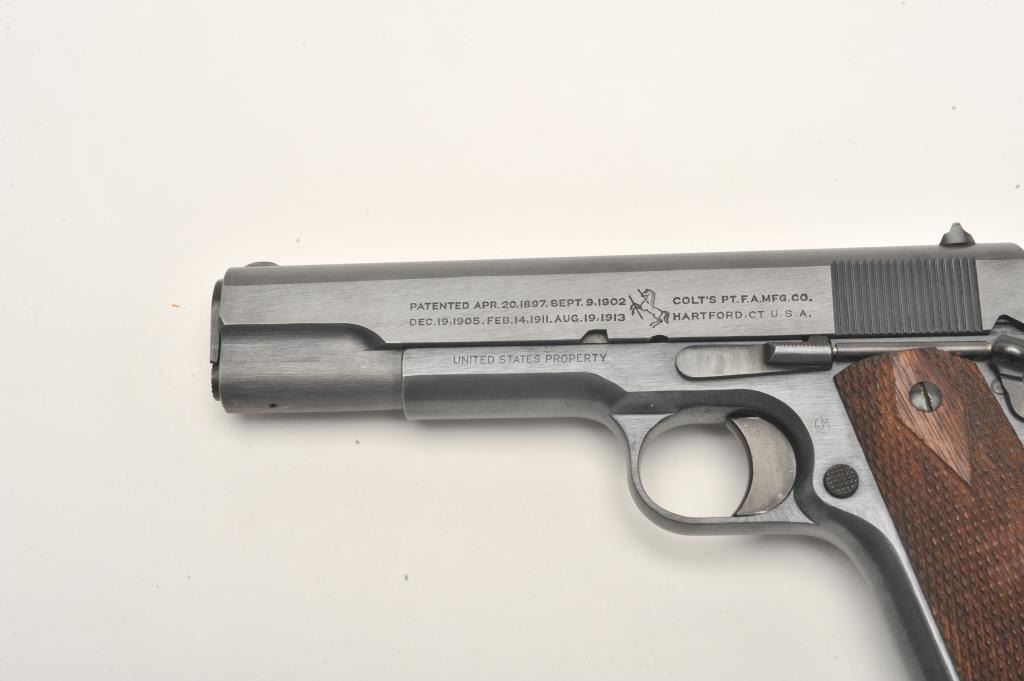 Lot 868 Colt U.S. Property Model 1911 semi-automatic pistol, .45 caliber, 5” barrel, black finish, checker