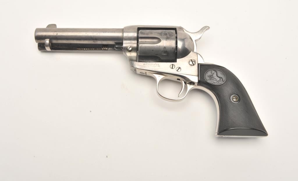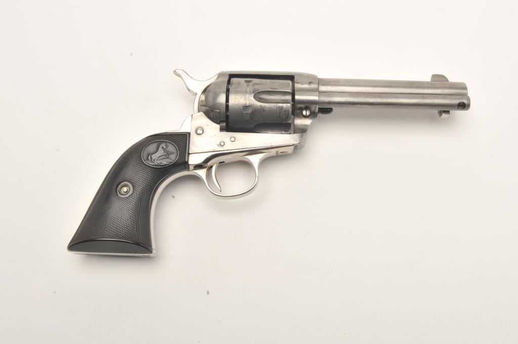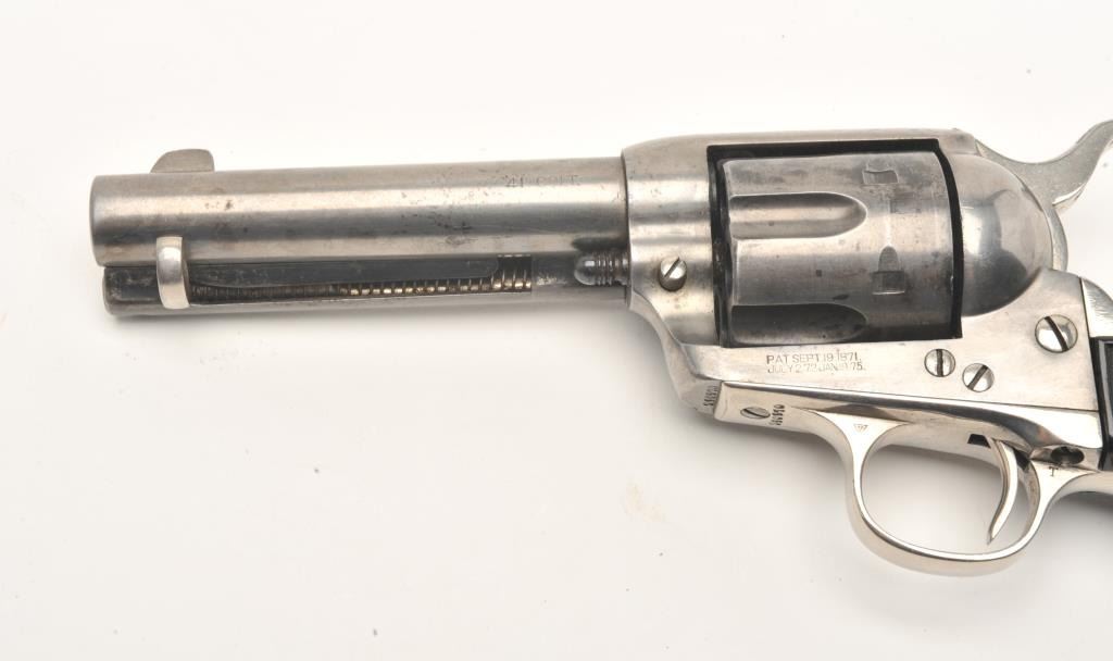 Colt SAA revolver, .41 caliber, 4.75” barrel, blued finish, checkered hard rubber grips, S/N 290970, in overall very good condition, cleaned metal surfaces, very good bore, crisp action, very good markings and grips,accompanied by a Colt factory letter confirming feature with type of stocks “Not Listed”; shipped to Dunham, Carrigan & Hayden Co., San Francisco, California on March 20, 1907; 4 guns in shipment. (C&R/No PPT). Est.: $1,250-$2,500.