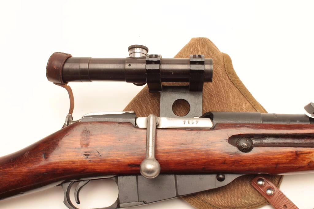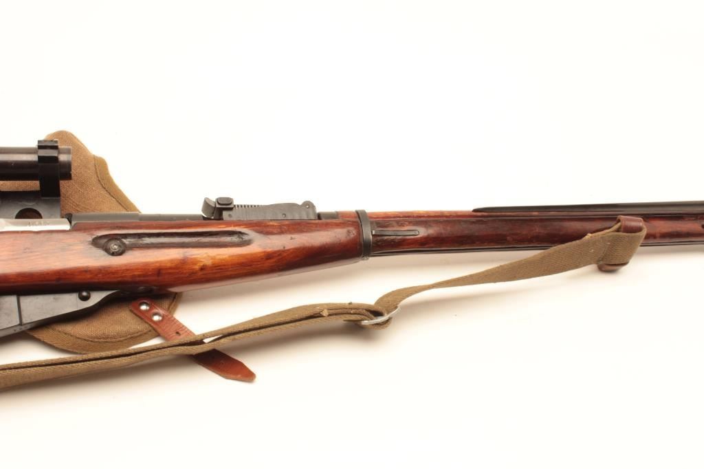 Lot 904 Russian Mosin-Nagant Model 91 bolt action rifle, set up with WW II Sniper scope, tan canvas cover,