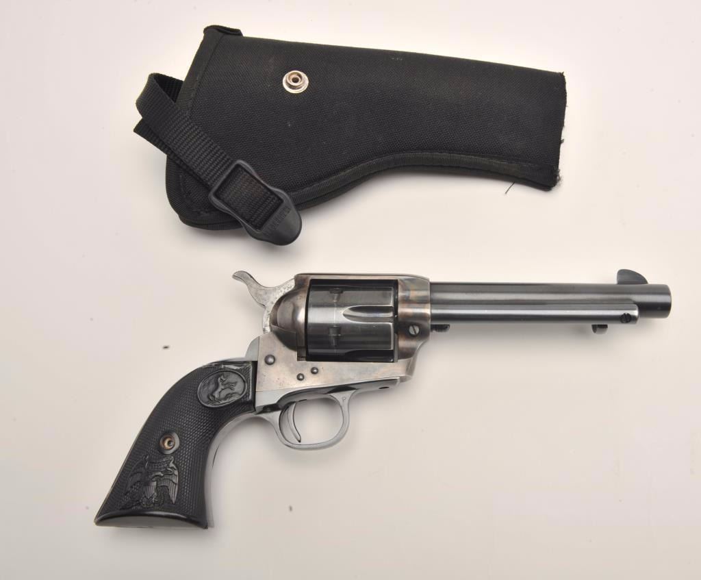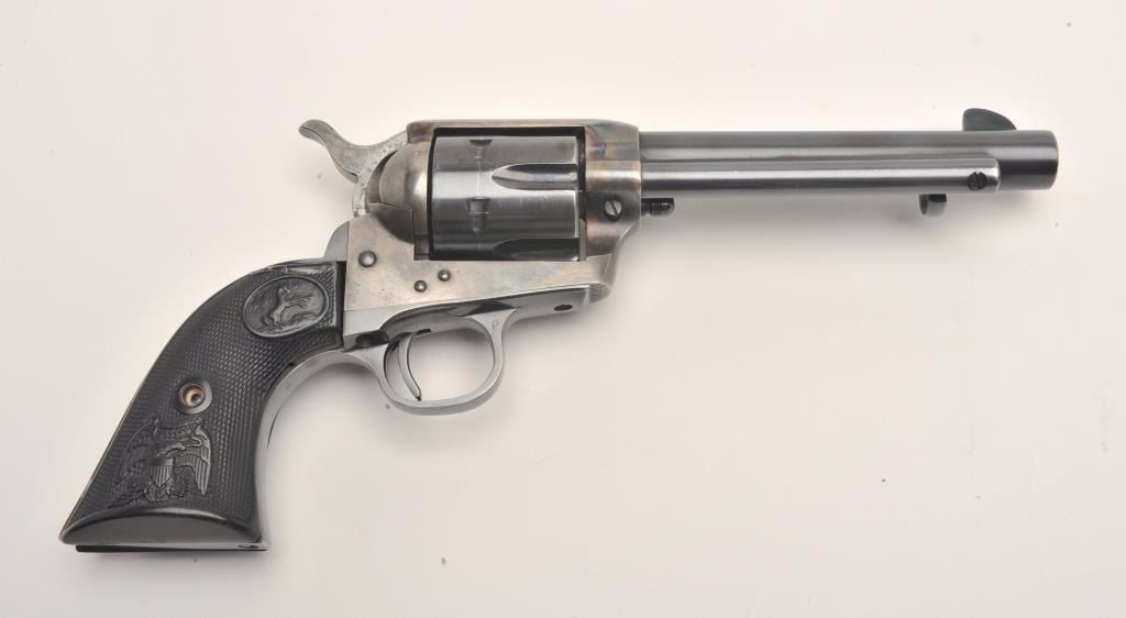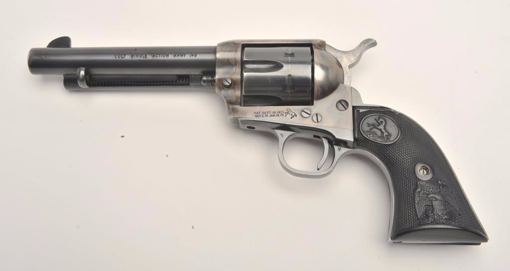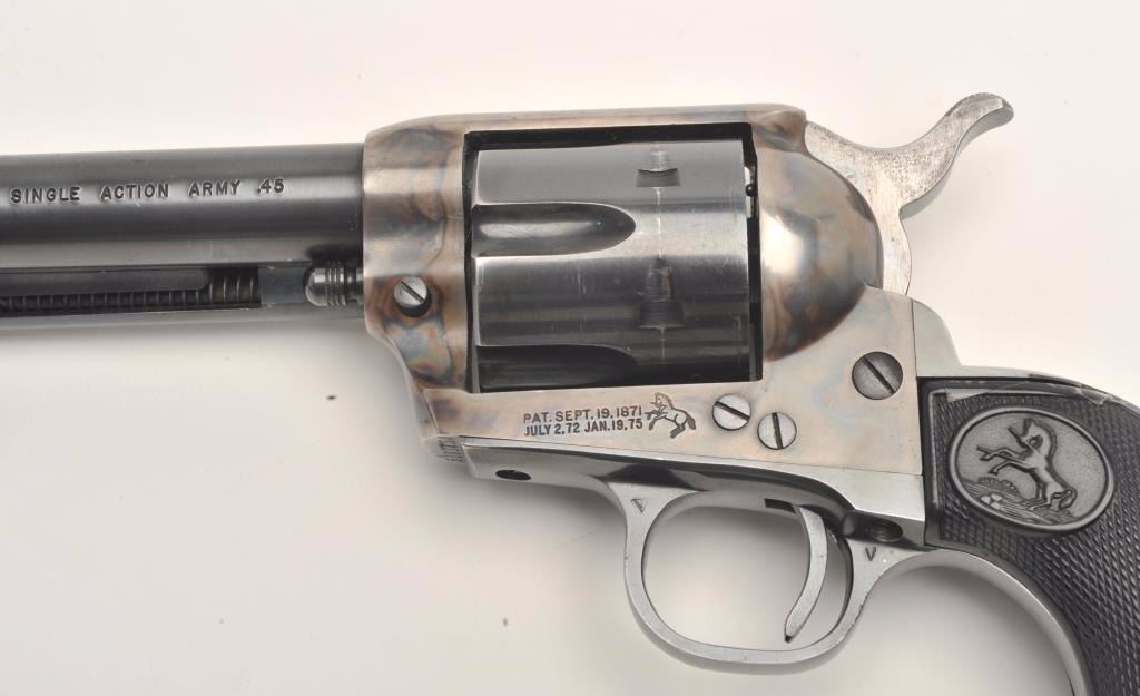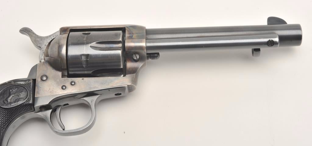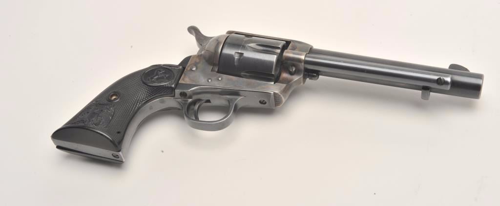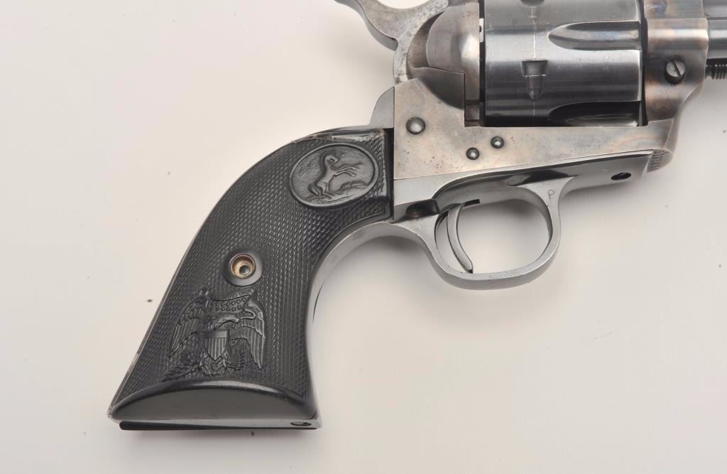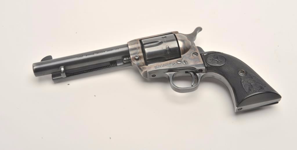 Lot 912 Colt 2nd Generation SAA revolver, .45 caliber, 5.5” barrel, blued and case hardened finish, checke