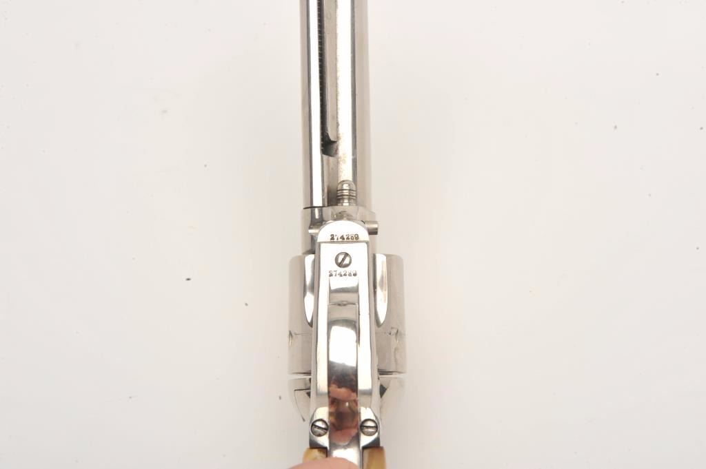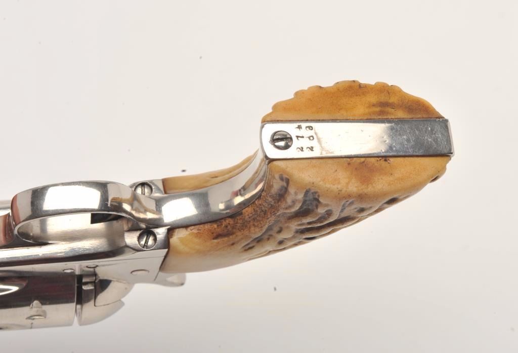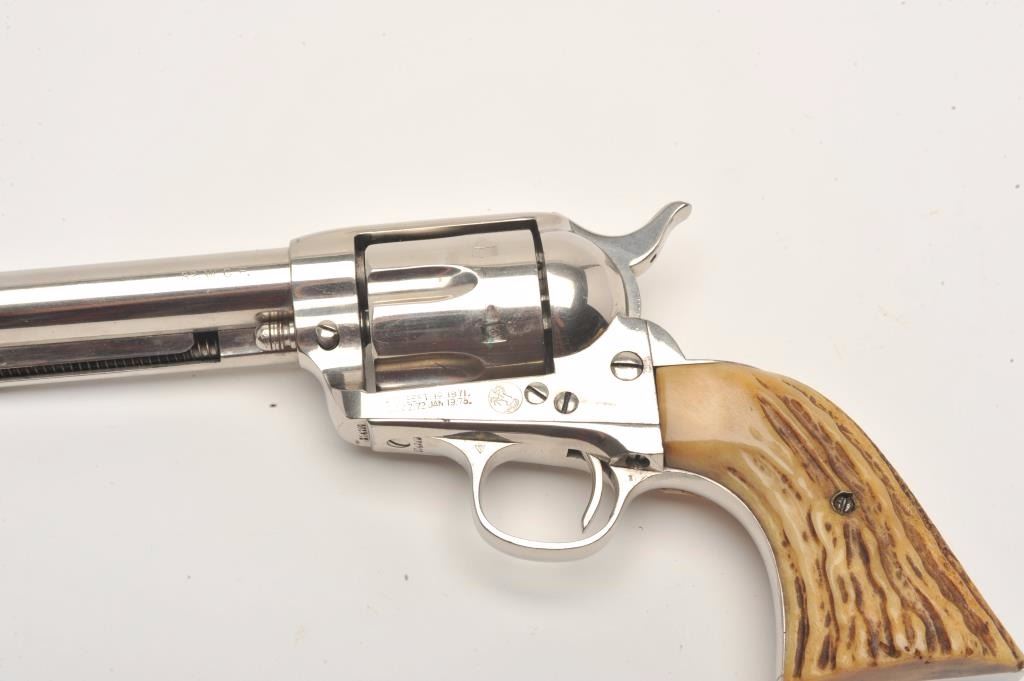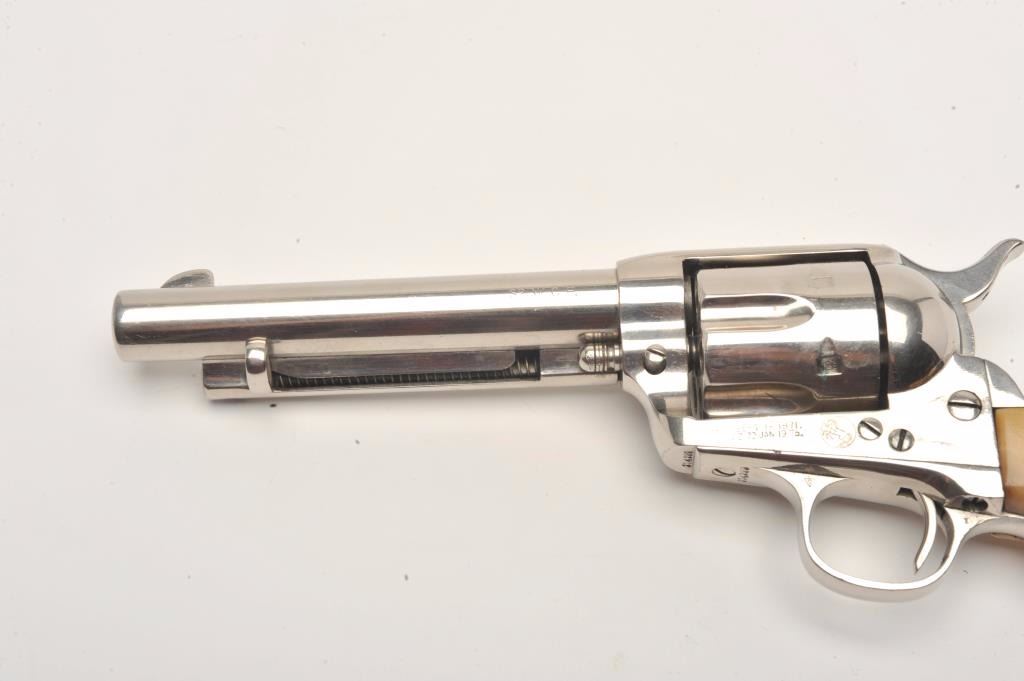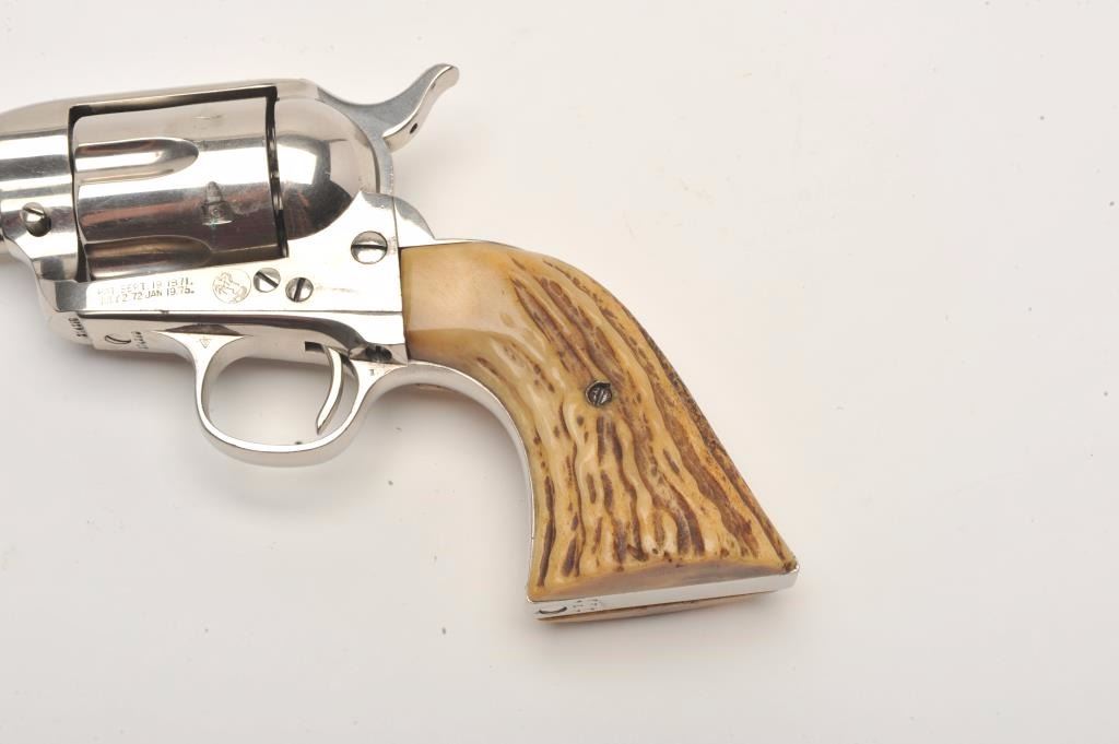 Lot 915 Colt SAA revolver, .32 W.C.F. caliber, 5.5” barrel, old re-nickel finish, stag grips, S/N 274289,