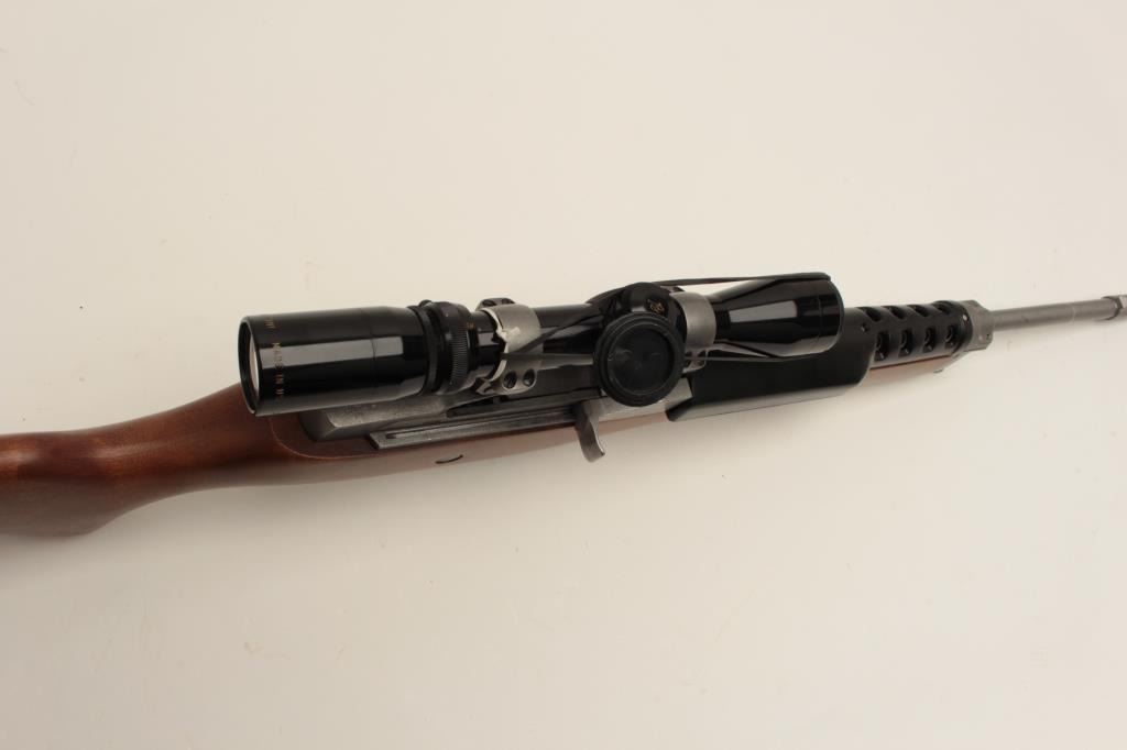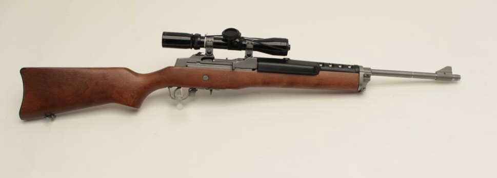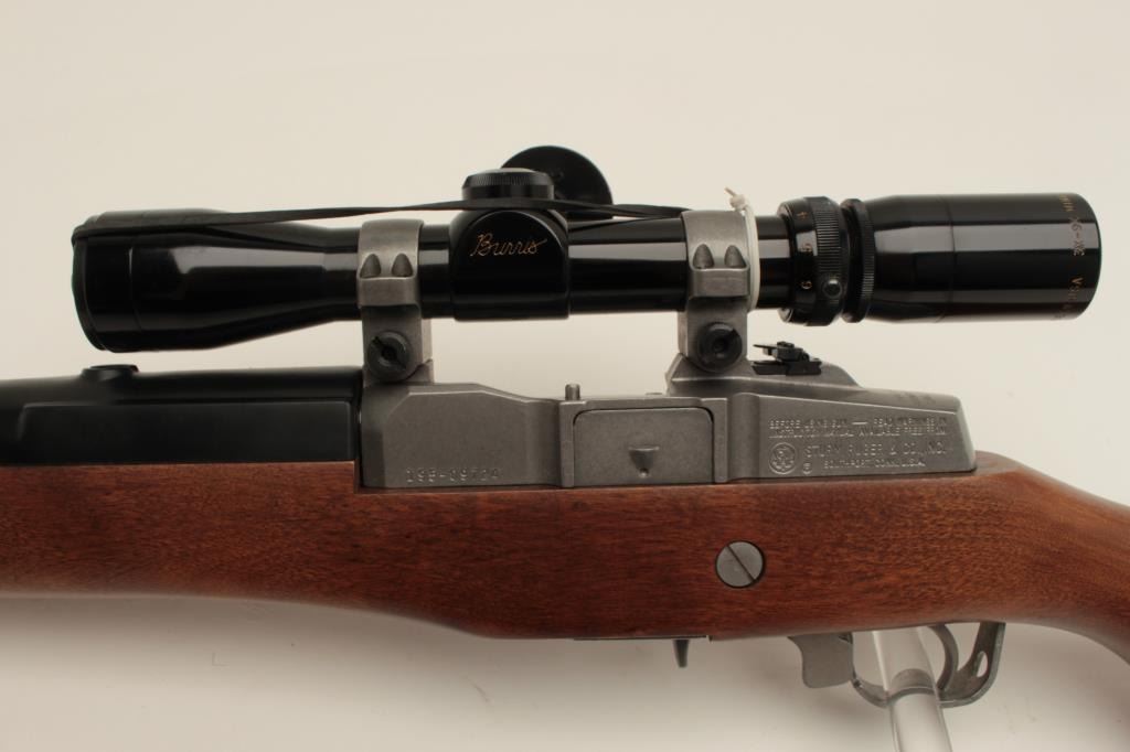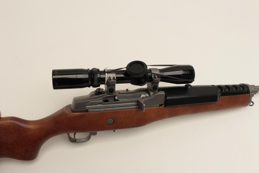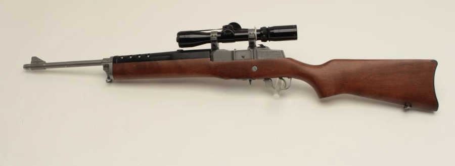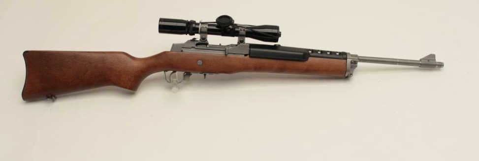 Ruger Ranch Model semi-automatic rifle, .223 caliber, 18.5” barrel, stainless, wood stock, S/N 195-09724, mounted with a Burris 3X-9X scope with crisp optics, in overall fine condition with fine action, markings, woodand near fine bore. (Modern/No PPT). Est.: $600-$1,200.
