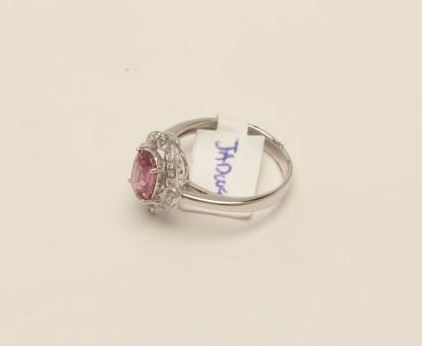 One beautiful oval cut pink sapphire approx. 2ct set in an 18k white gold setting with diamond sides. EST.$1,000-1,500