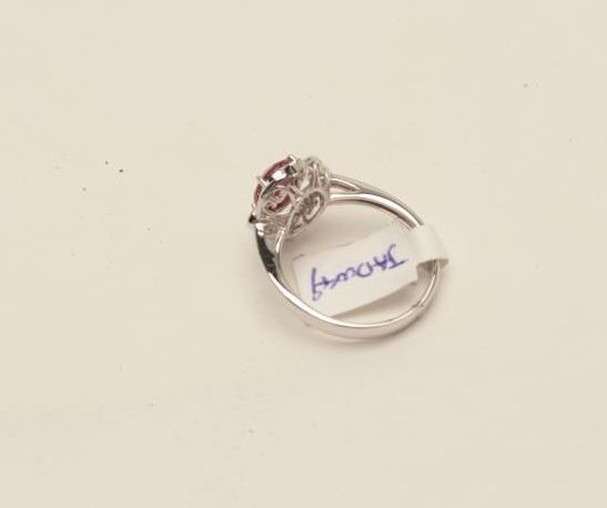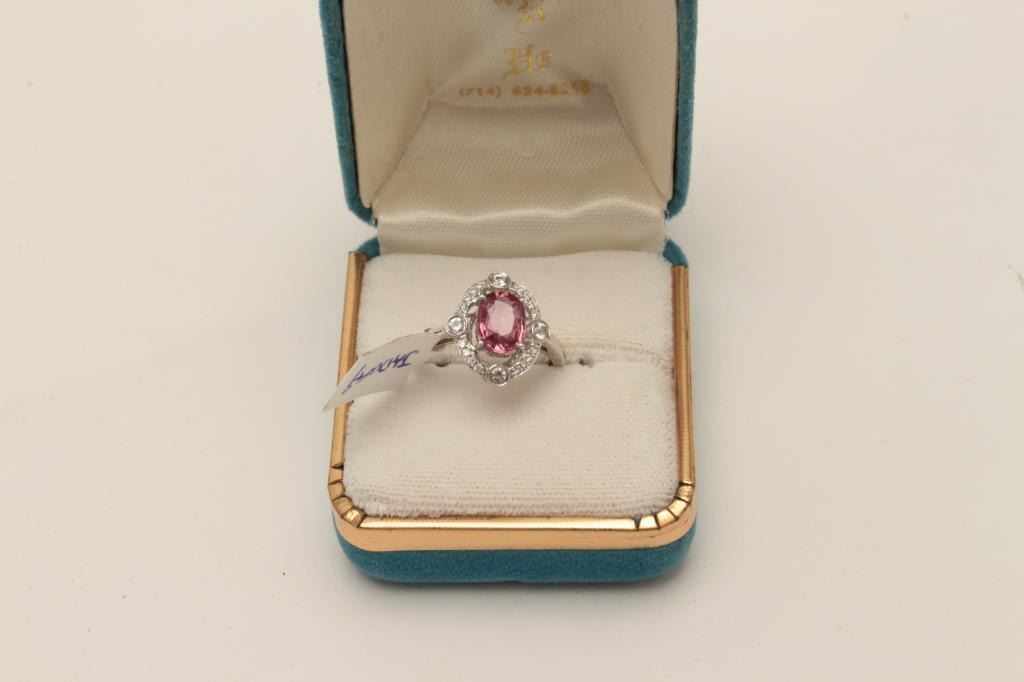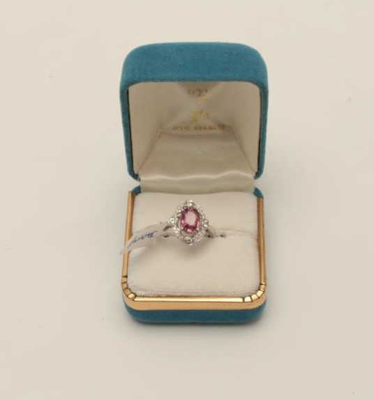 Lot 943 One beautiful oval cut pink sapphire approx. 2ct set in an 18k white gold setting with diamond sid