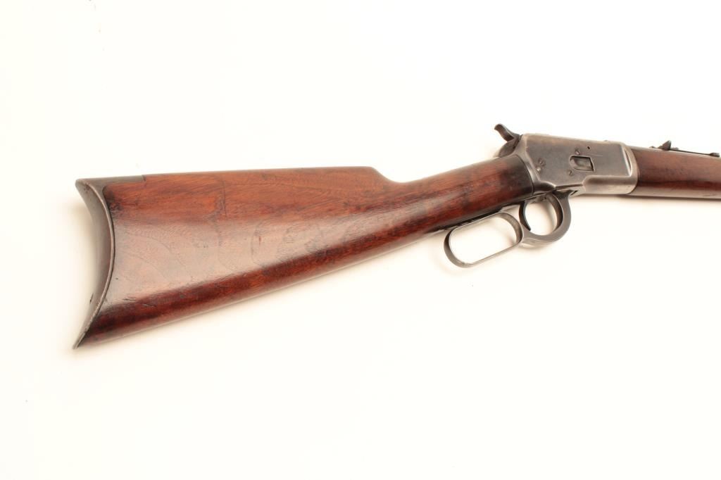 Winchester Model 1892 lever action rifle, .25-20 W.C.F. caliber, 24” round barrel, half magazine, wood stocks, S/N 868121, in overall very good + condition displaying the majority of its original blued finish, verygood bore, crisp action, sharp markings and very good + wood. (C&R/No PPT). Est.: $800-$1,600.