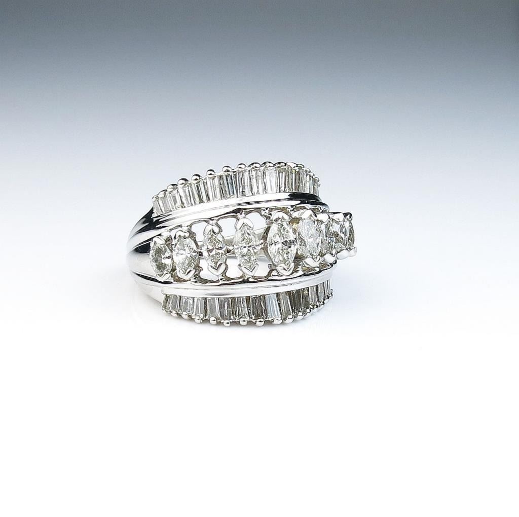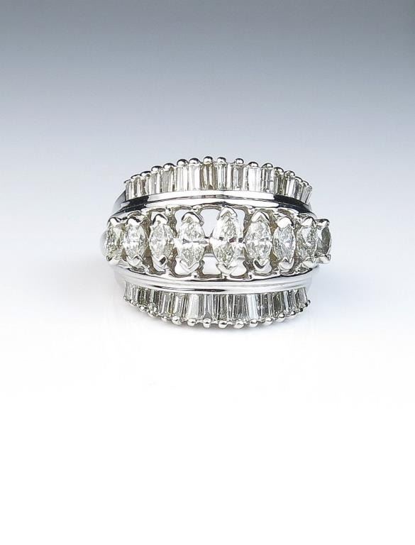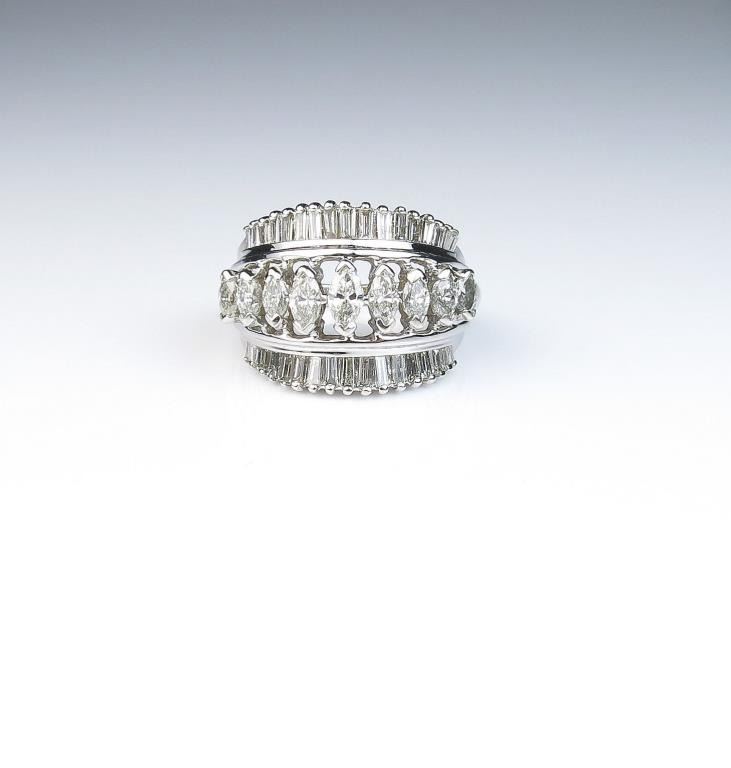 Lot 973 Amazing cocktail ring featuring forty MQ and baguette cut diamonds weighing approx. 2.00 carat of