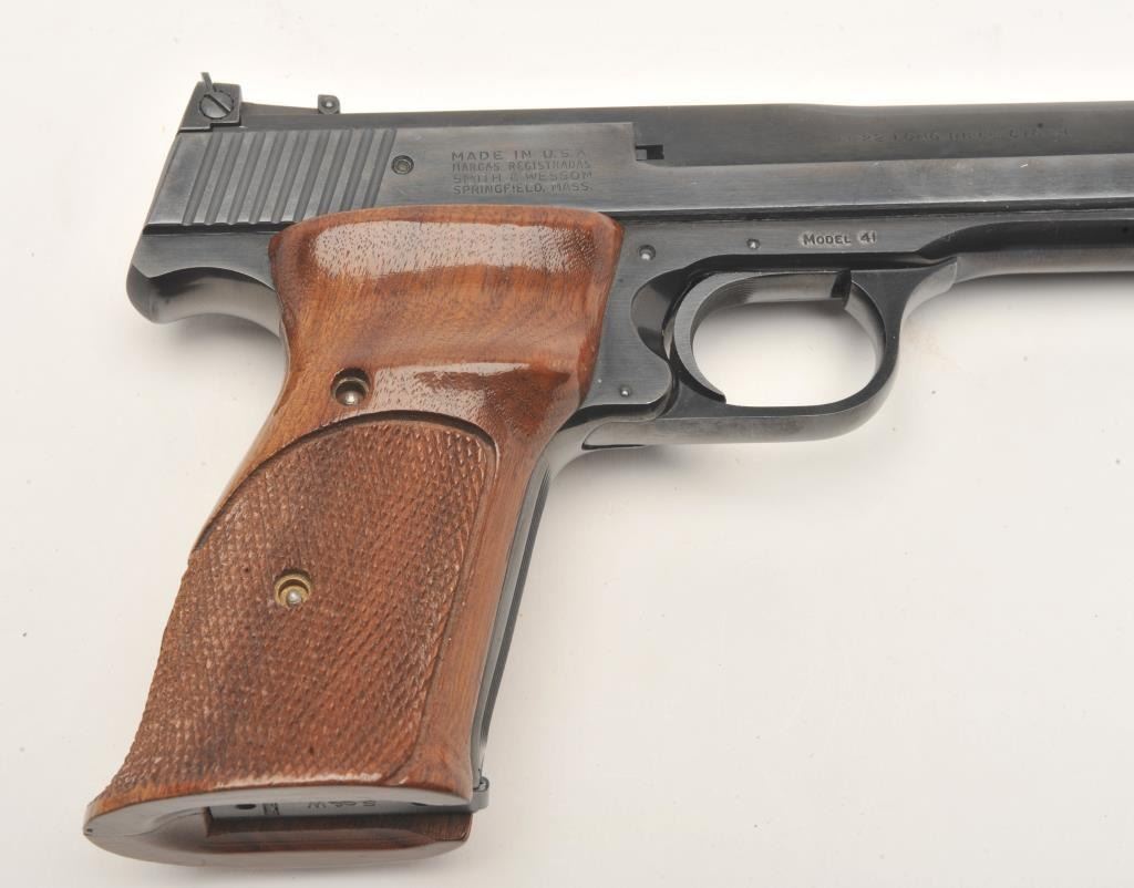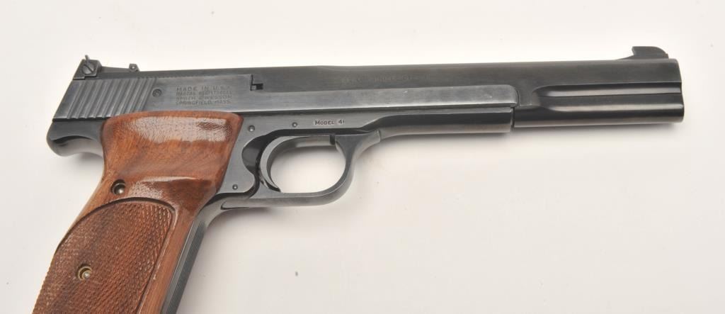 Lot 983 Smith & Wesson Model 41 semi-automatic target pistol, .22LR caliber, 7” barrel, blued finish, chec