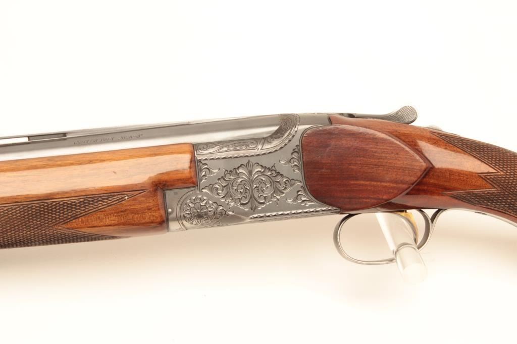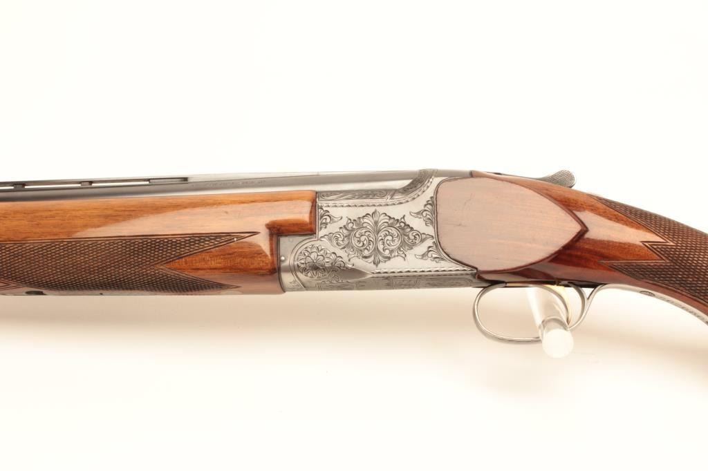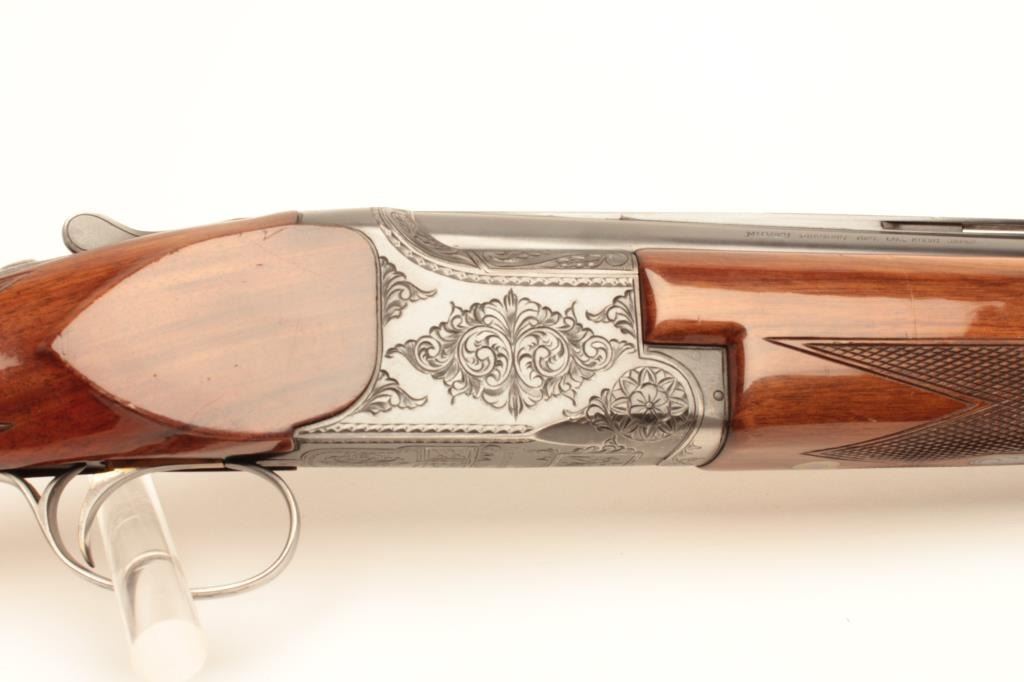 Charles Daly O/U shotgun Miroku made in Japan, 20 gauge, 3”, 28” ventilated rib barrels, checkered wood stocks, single trigger, S/N 207080, in overall fine condition showing the majority of itsoriginal finish to metal surfaces, very good to fine bores, crisp actions, very good wood stocks with some minor mars and scratches from storage. (Modern/No PPT). Est.: $500-$1,000.