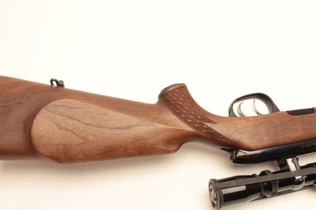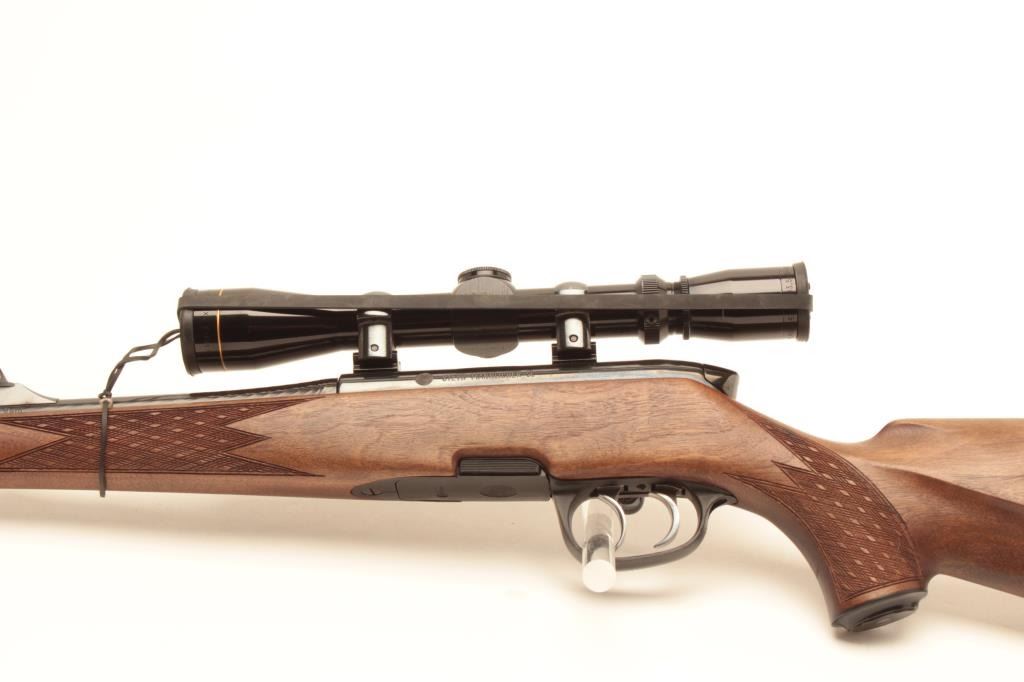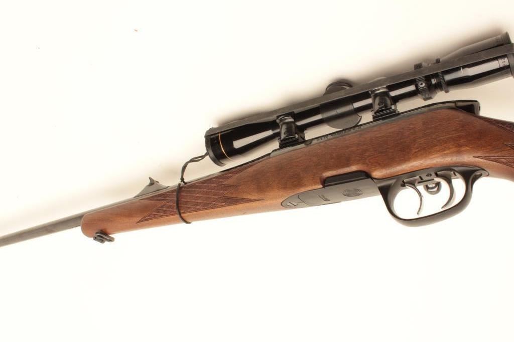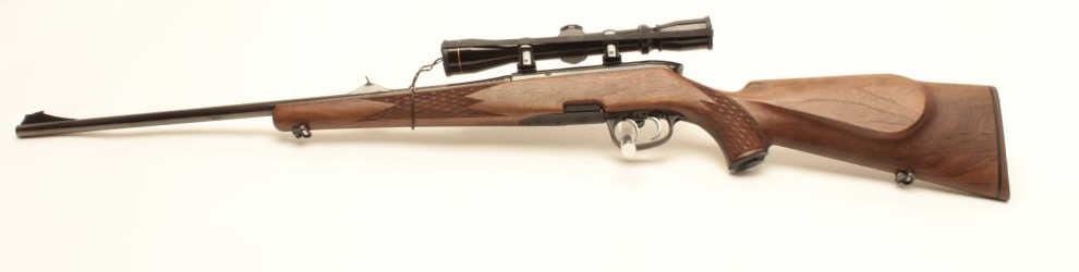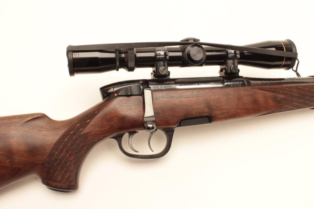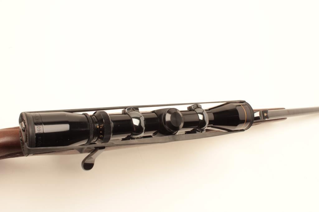 Steyr-Mannlicher-SL bolt action rifle, double set triggers, .223 Rem. caliber, 24” barrel, black finish, checkered wood stock with sling swivels, S/N 178380, mounted with a Leupold 3x9 scope displaying sharp optics, in overall fine condition with majority of original finish remaining on metal surfaces, fine bore, crisp action, sharp markings and fine stock. (Modern/No PPT). Est.: $800-$1,600.