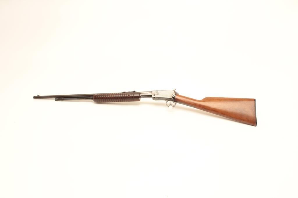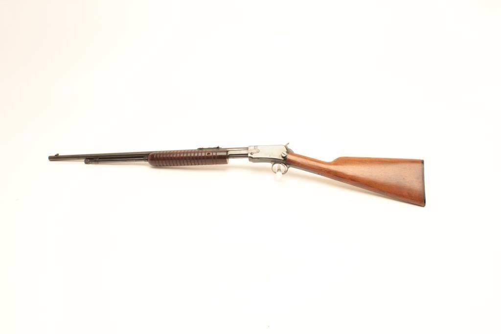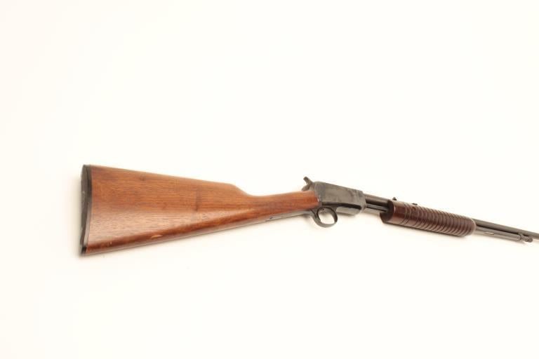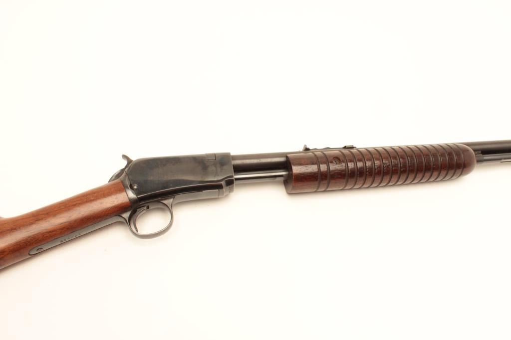 Winchester Model 62A pump action rifle, .22 short, long or LR caliber, 23” round barrel, blued finish, wood stocks, S/N 170122, in overall fine condition displaying the majority of its original factory finish, fine bore, action and markings, very good to fine wood with a couple scattered mars from storage. (C&R/No PPT). Est.: $500-$1,000.