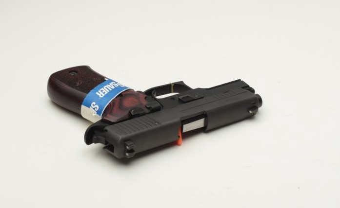 Sig Sauer P220 Elite in .45 caliber with nitron finish, night sights, S/NG510107. Like new in the box with factory tape, papers, and extra clip. (NO CA Sale/No PPT) Est.: $500-1,000