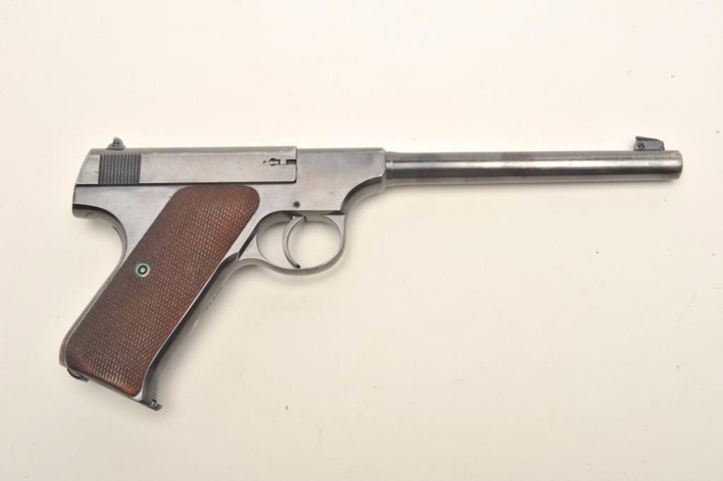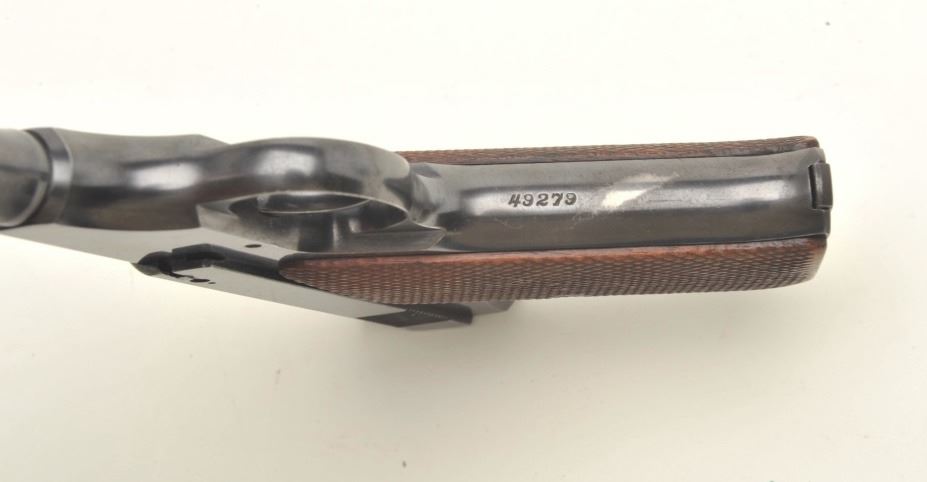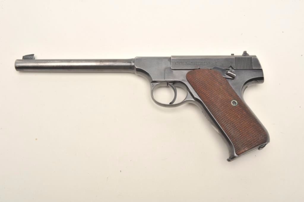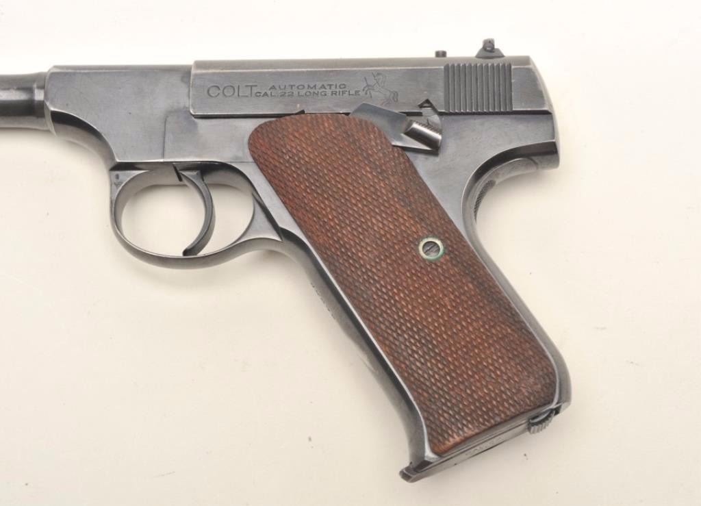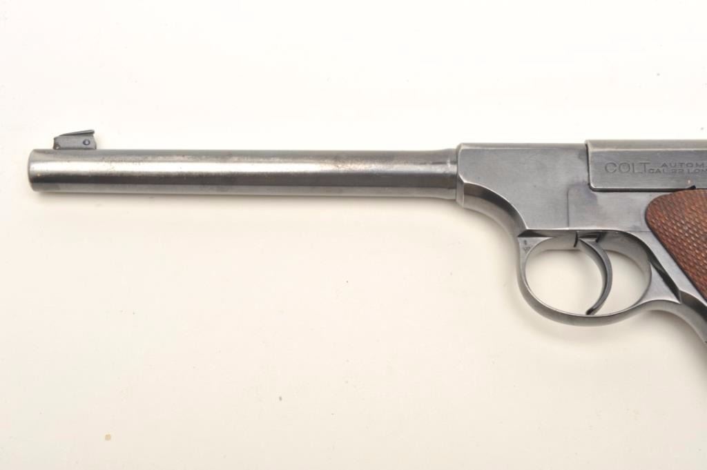 Lot 1014 Colt Pre-Woodsman semi-auto pistol. .22 Long Rifle caliber, serial #49279. The pistol is in ver