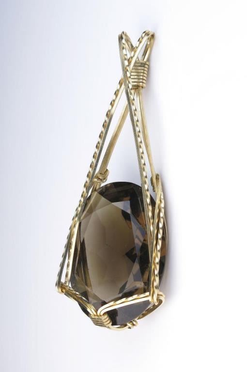 Lot 1036 Huge handmade Sterling over gold plate necklace featuring a large smoky topaz weighing approx. 100