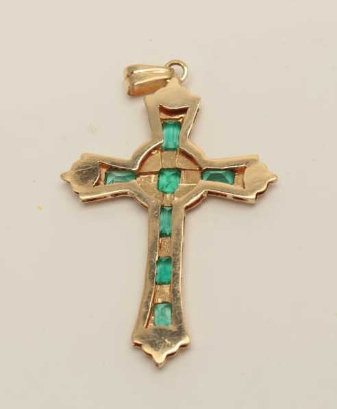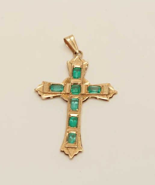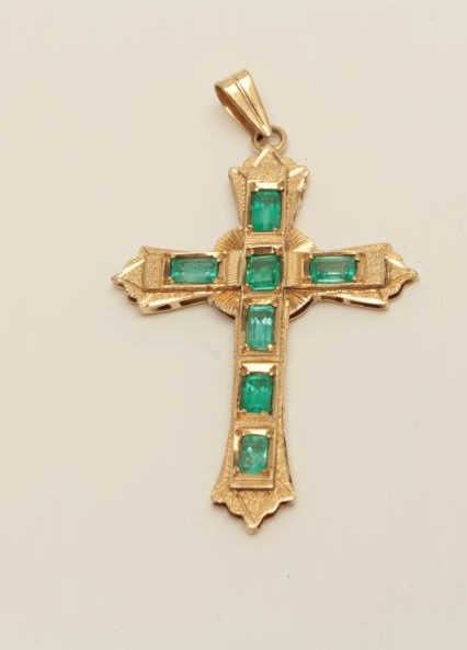 Lot 1041 Custom Designer made 18k Gold Cross set with 7 Emeralds weighing over 4carats and of high quality.