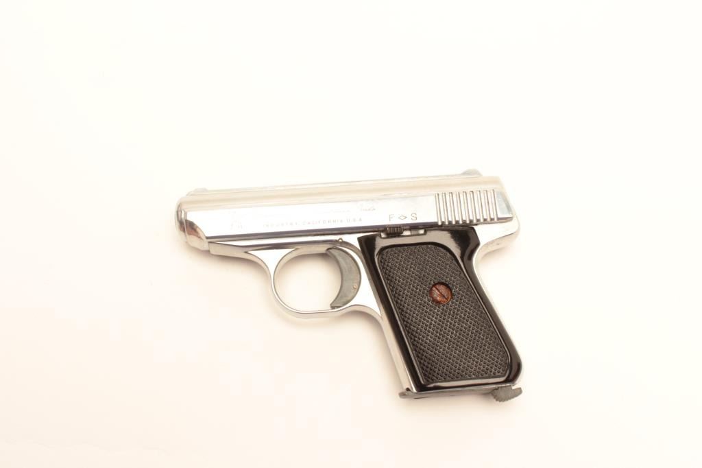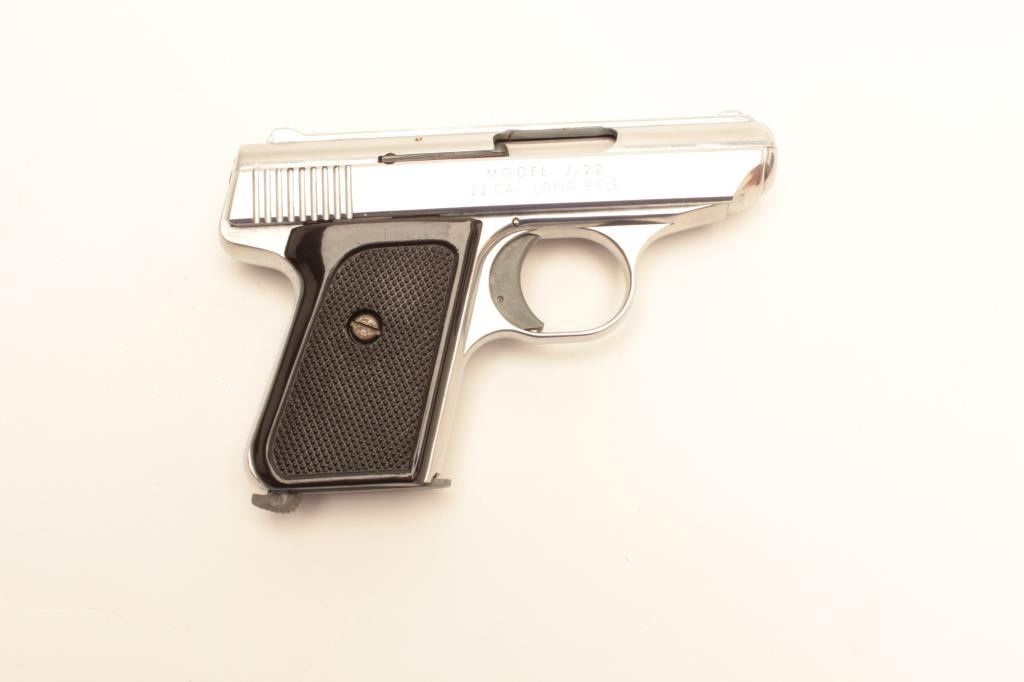 Lot 1046 Jennings Model J-22 semi-automatic pistol, .22LR caliber, 2.5” barrel, nickel finish, checkered pl