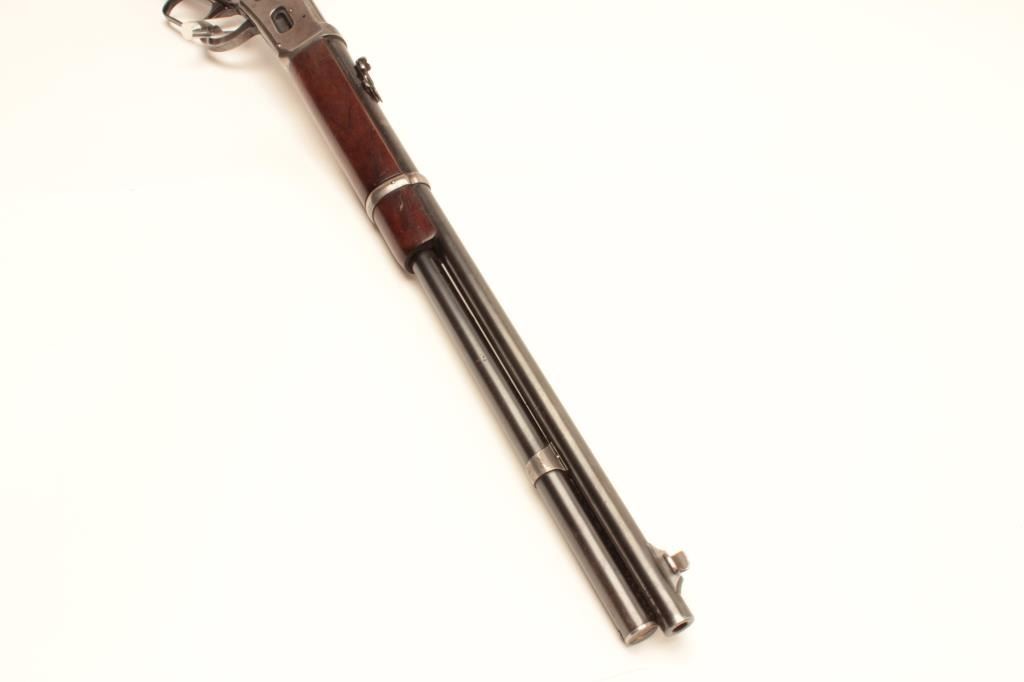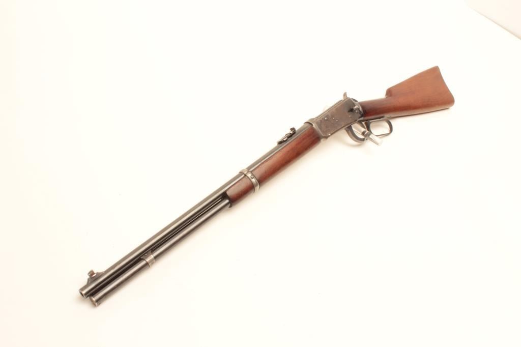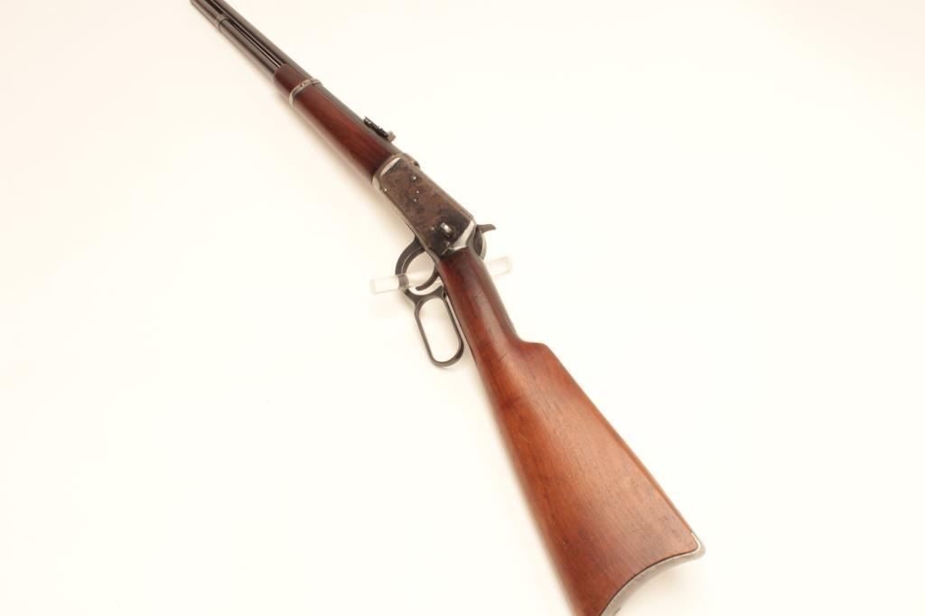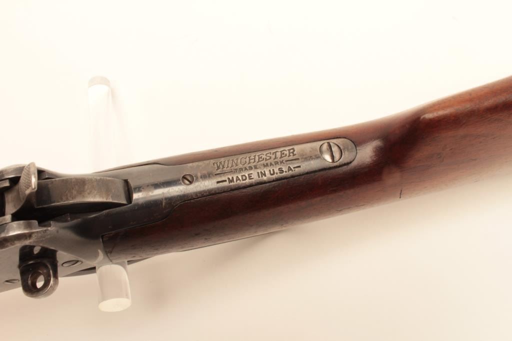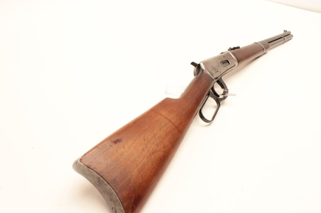 Winchester Model 94 lever action SRC, .30 W.C.F. caliber, barrel changed and shortened with wrong front band, saddle ring missing but base is present, blued finish, wood stocks, S/N 1028176, in overall goodcondition with a good bore, action, markings and worn but overall good wood. (C&R/No PPT). Est.: $400-$800.