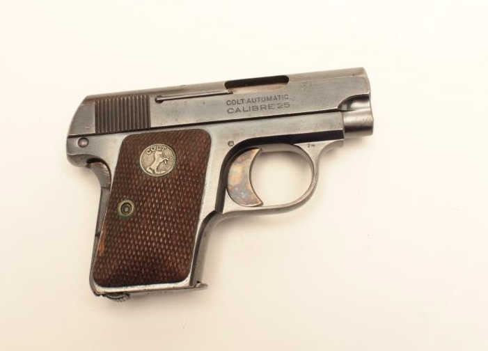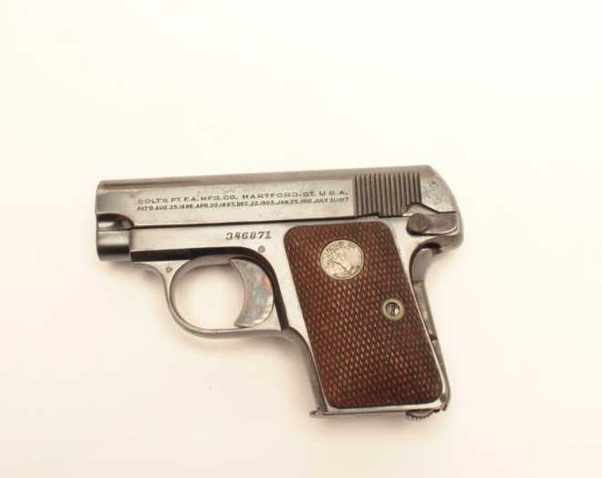 Lot 1051 Colt Model 1908 semi-auto pistol, .25 caliber, Serial #346871. The pistol is in very good overall