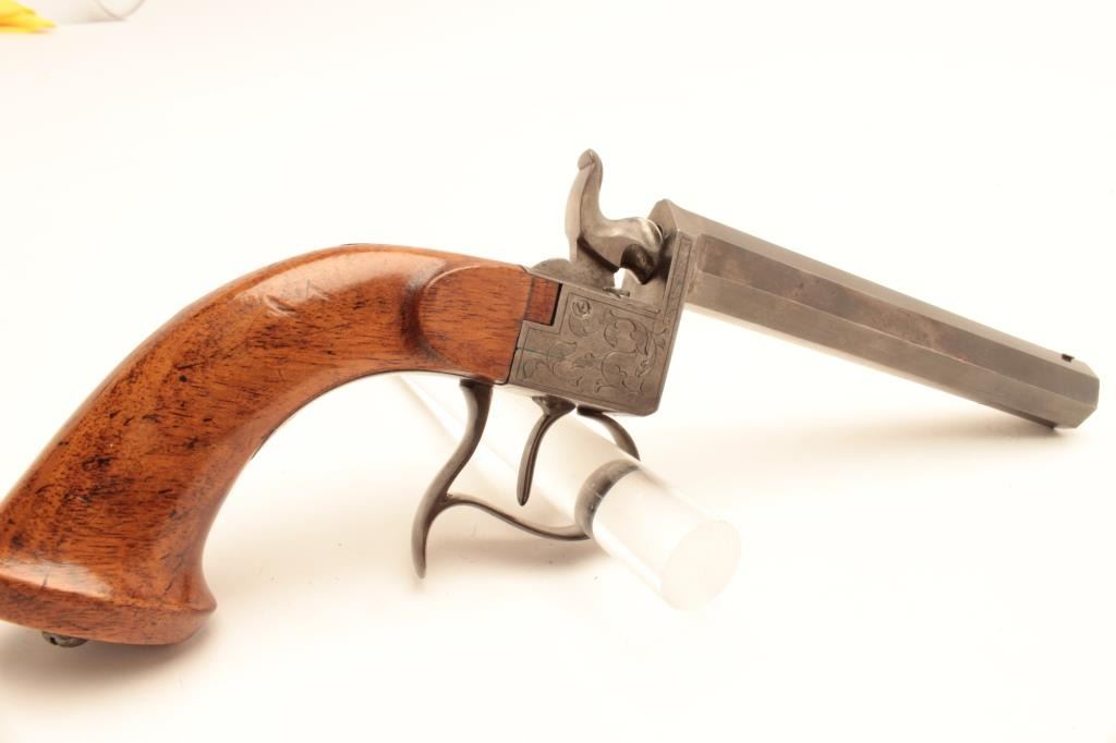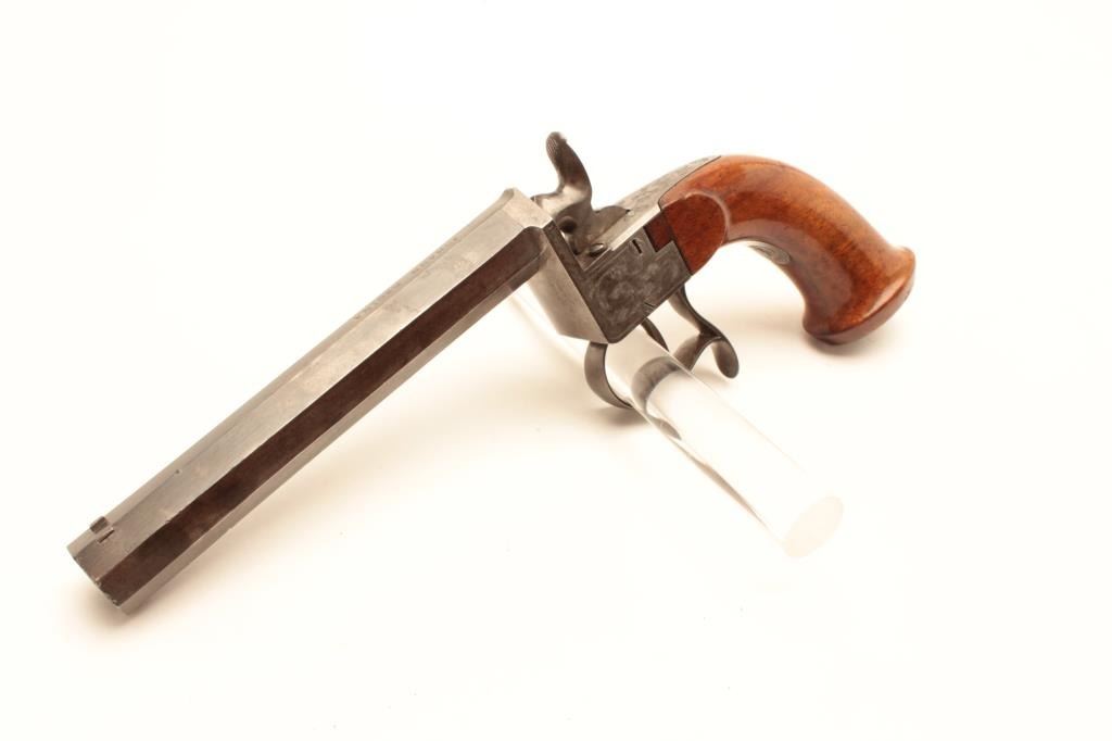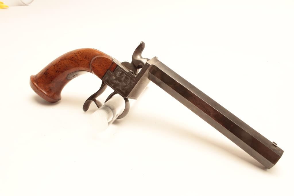 Germanic Percussion Parlor Pistol. Approx. 17 cal. signed Johann Regina, 11 1/4" overall. 5 3/4 heavy oct. barrel. Almost fine orignial condition. Est:$350-700
