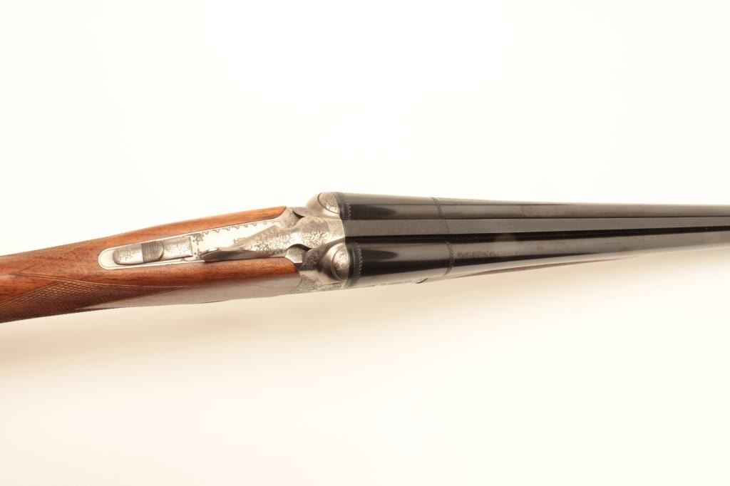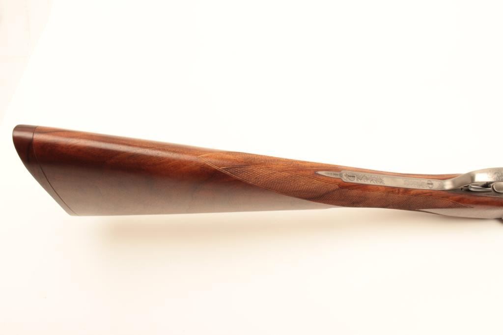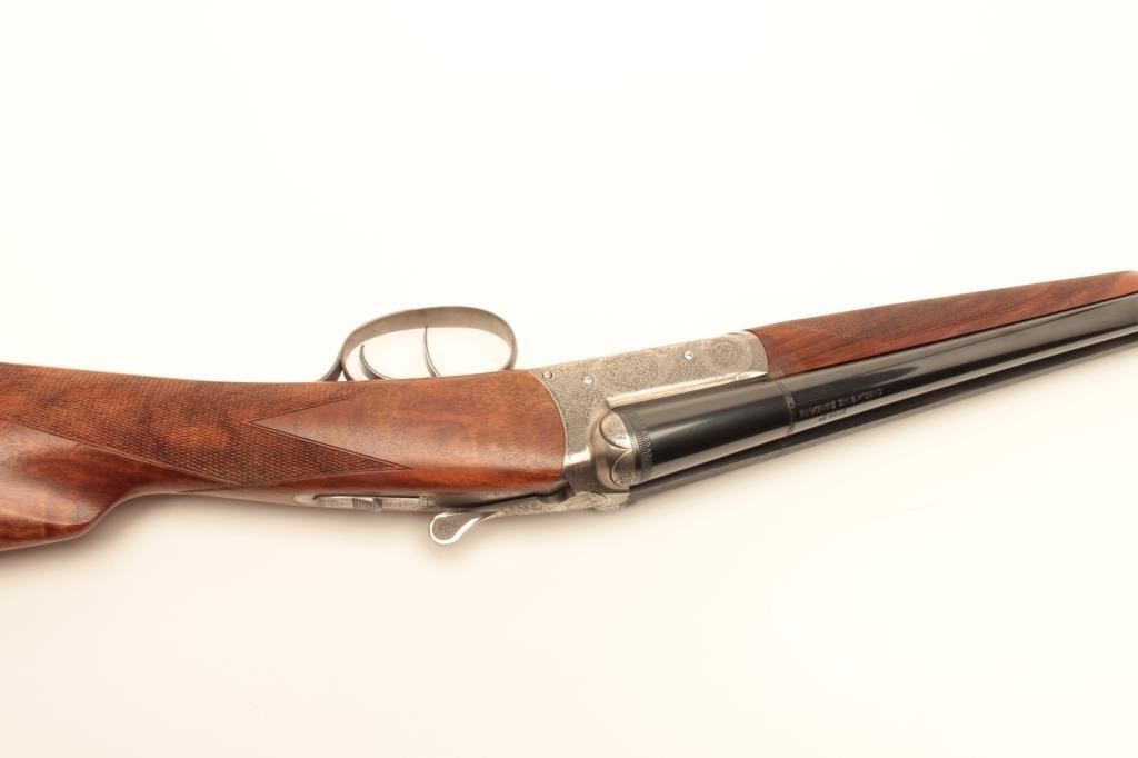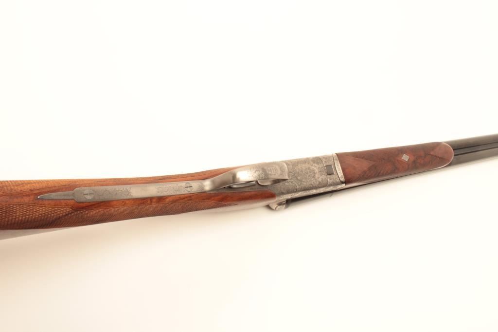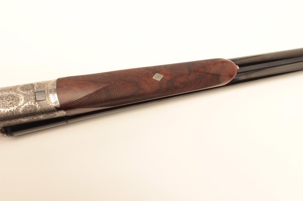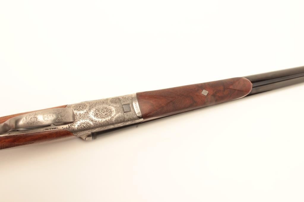 Lot 1062 Beautiful Italian Fausti round body SxS hammerless shotgun, finely engraved receiver, 20 gauge, 28