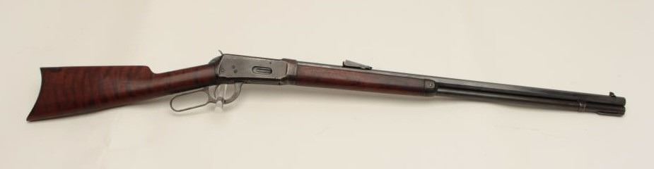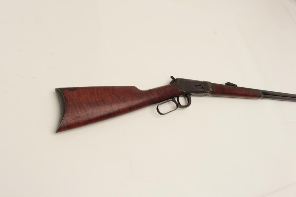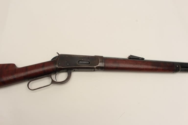 Winchester Model 94 lever action takedown rifle, .32 W.S. caliber, 26” octagon barrel, blued finish, wood stocks, S/N 965323, in overall very good + condition showing the majority of its blued finish, fine bore,crisp action, very good markings and better-than-usual graining to wood stocks. (C&R/No PPT). Est.: $1,250-$2,500.
