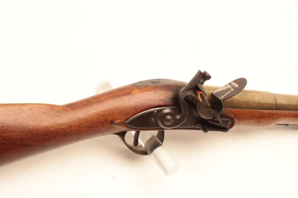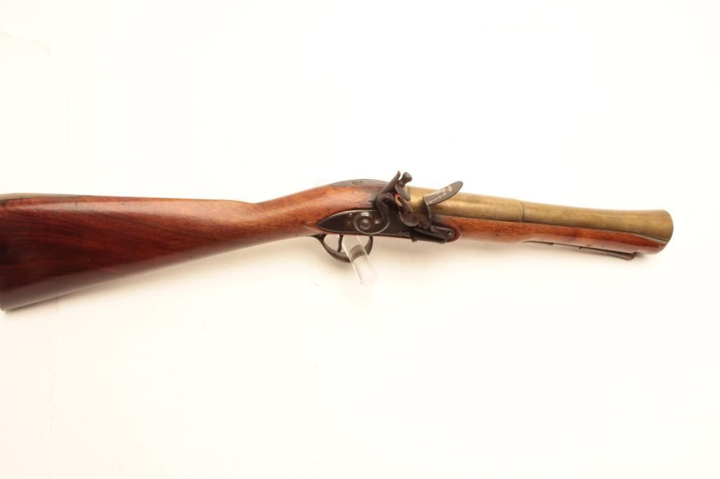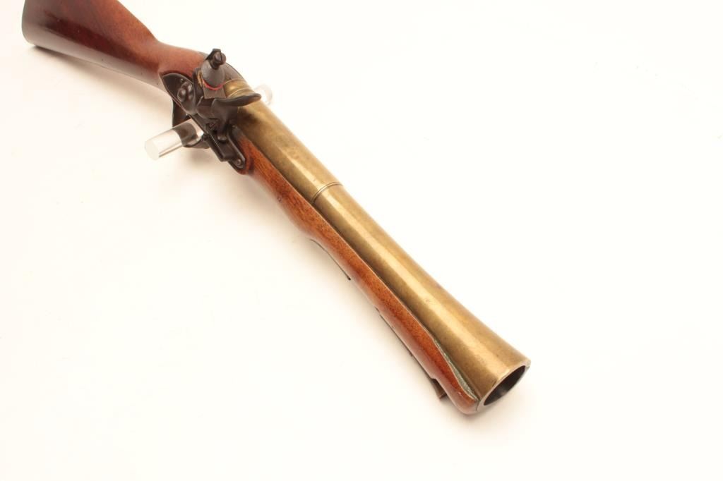 Lot 1075 J. Probin flintlock blunderbuss, approximately 28.5” overall with a 13” brass barrel, wood stock,