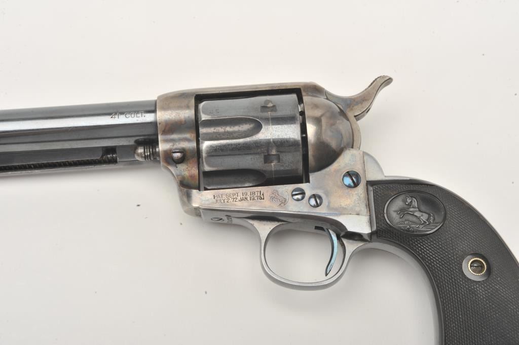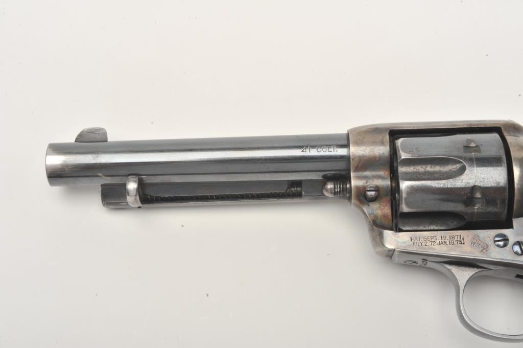 Lot 1078 Colt SAA revolver, .41 caliber, 5.5” barrel, blued and case hardened finish, checkered hard rubber