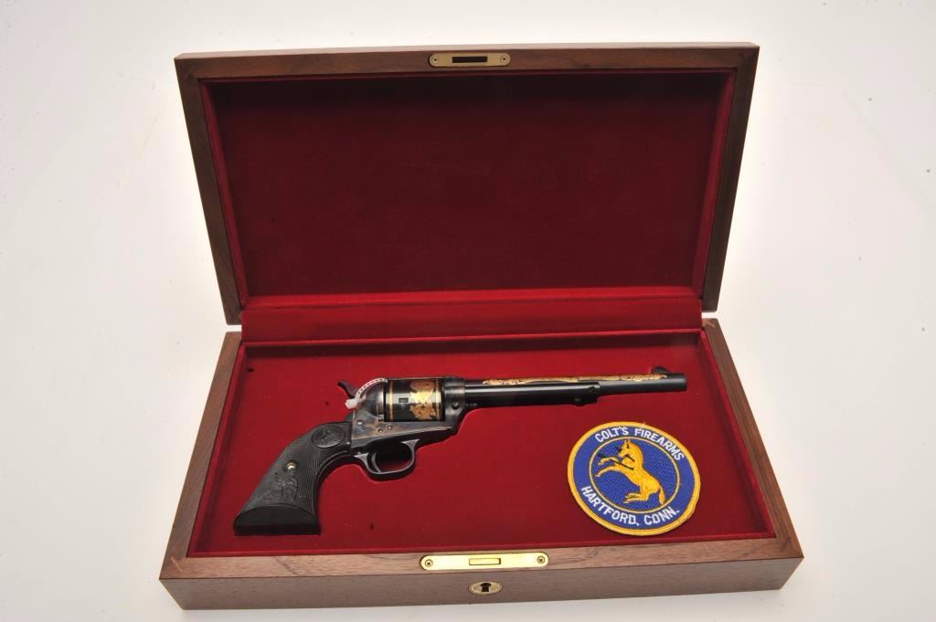 Lot 1086 Colt SAA Commemorative Bozeman Trail Special Edition revolver in factory wood display case and Col