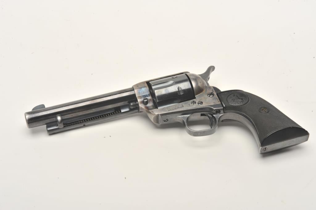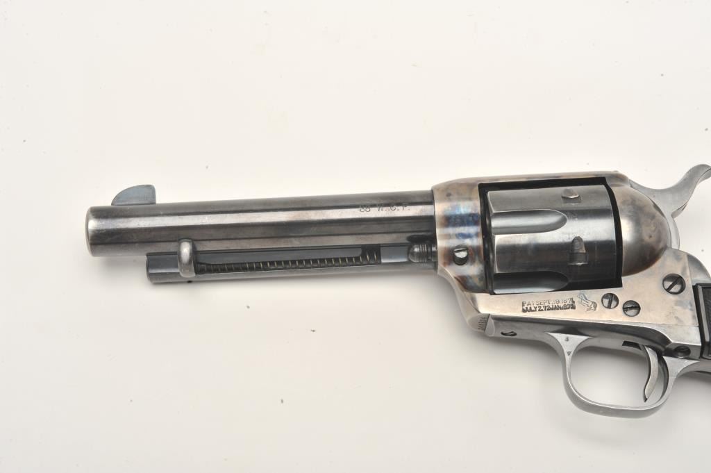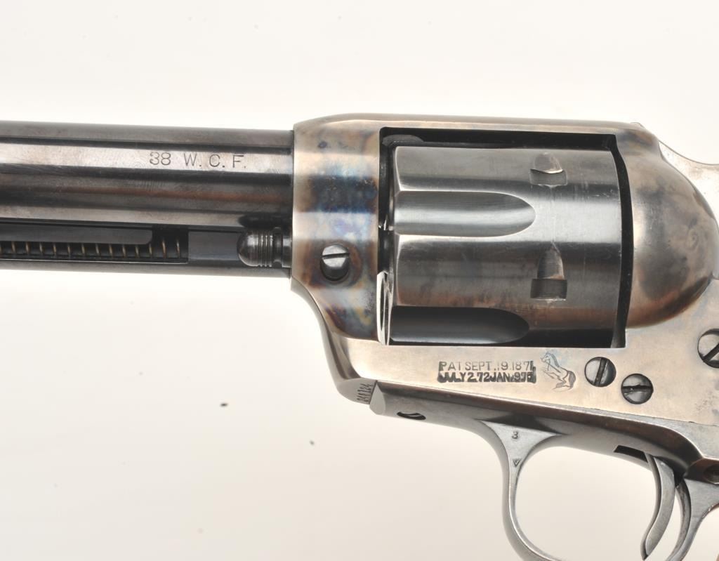 Lot 1098 Colt SAA revolver, .38 W.C.F. caliber, 5.5” barrel, blued and case hardened finish, checkered hard
