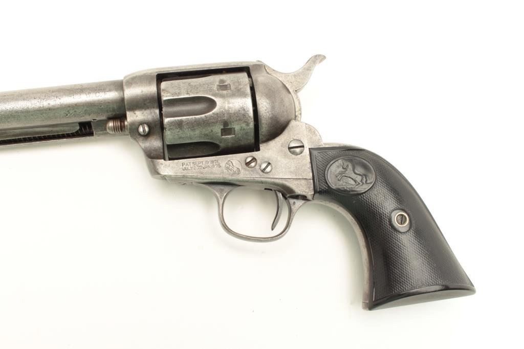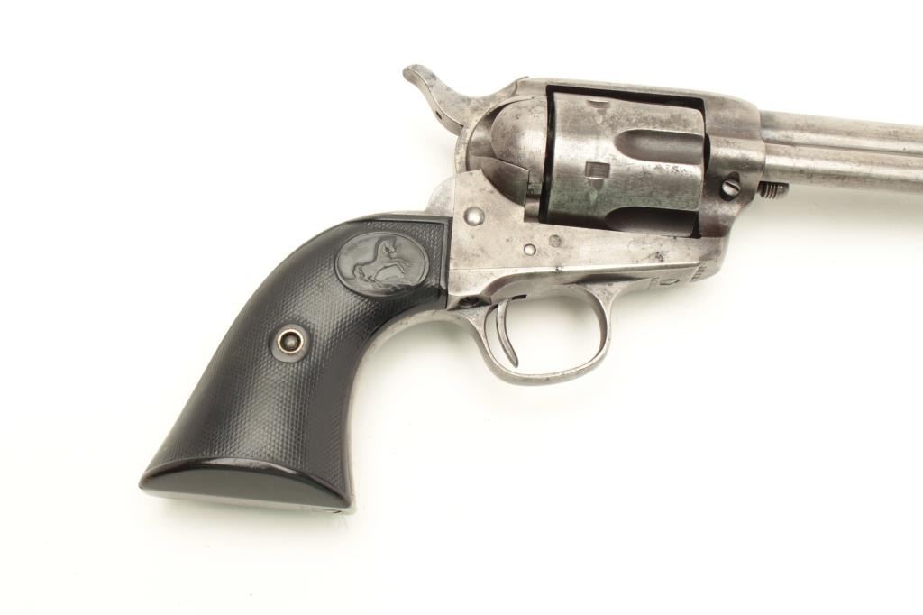 Lot 1112 Colt SAA revolver, .38/40 caliber, 5.5” barrel, blued finish, checkered hard rubber grips, S/N 301
