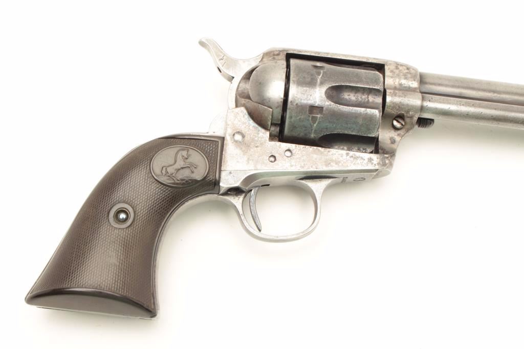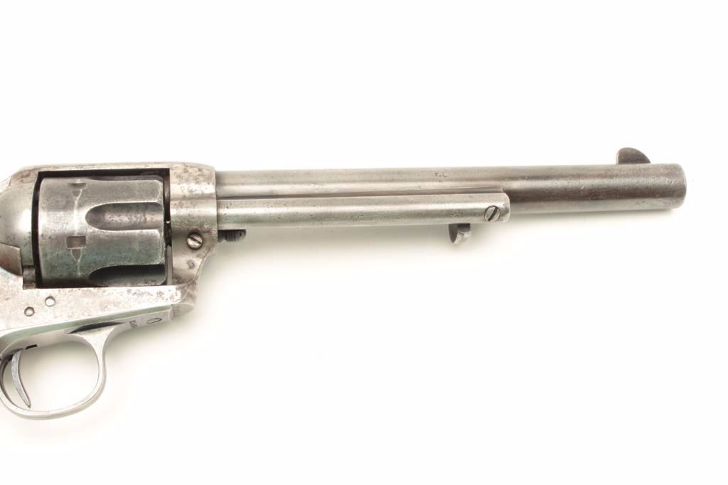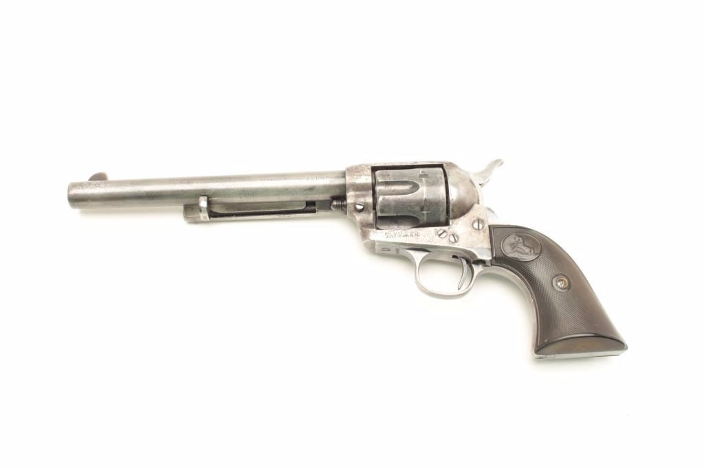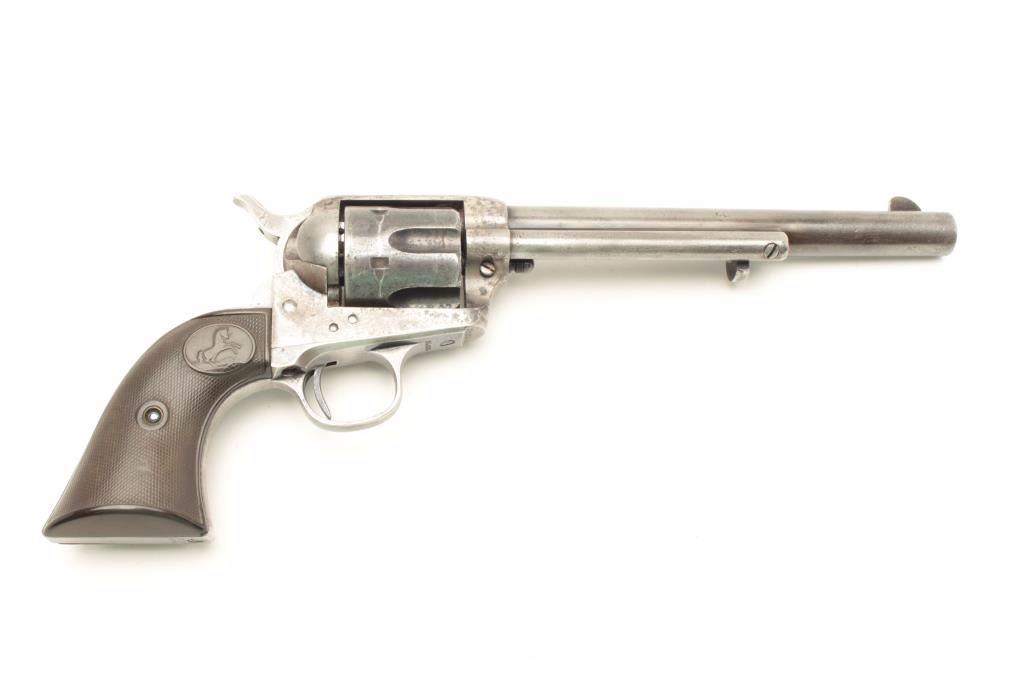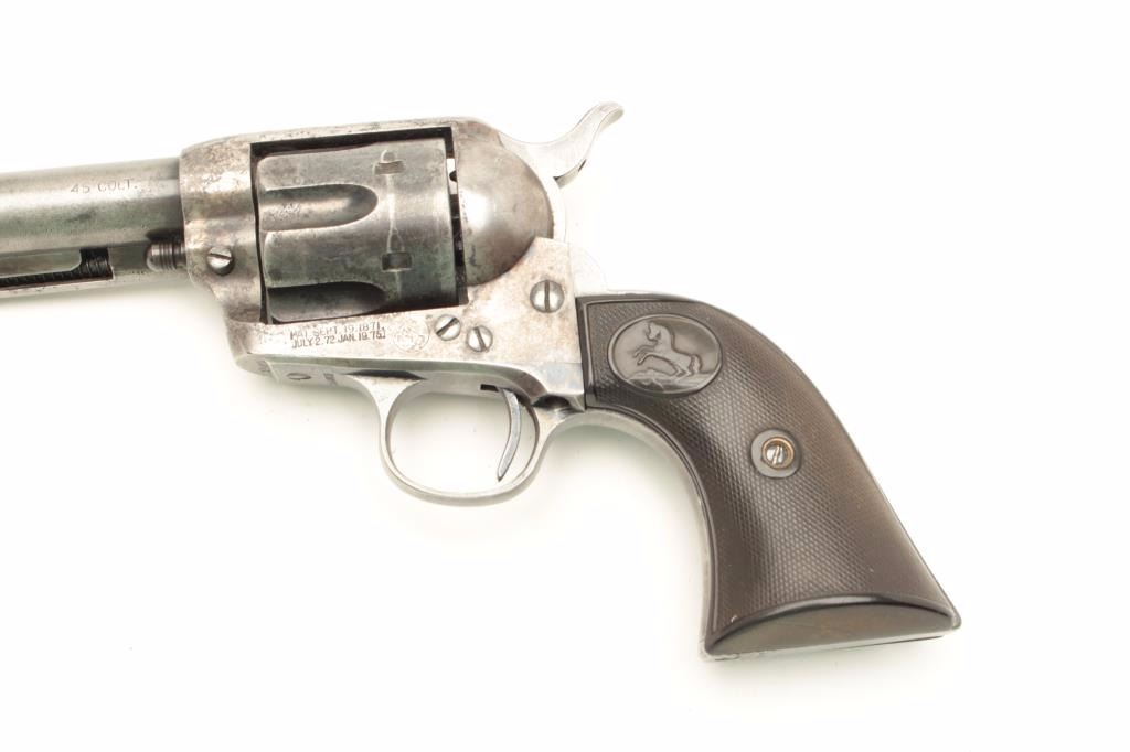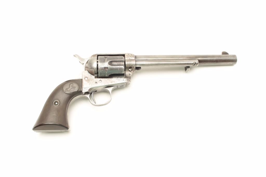Lot 1132 Colt SAA revolver, .45 caliber, 7.5” barrel, blued and case hardened finish, checkered hard rubber