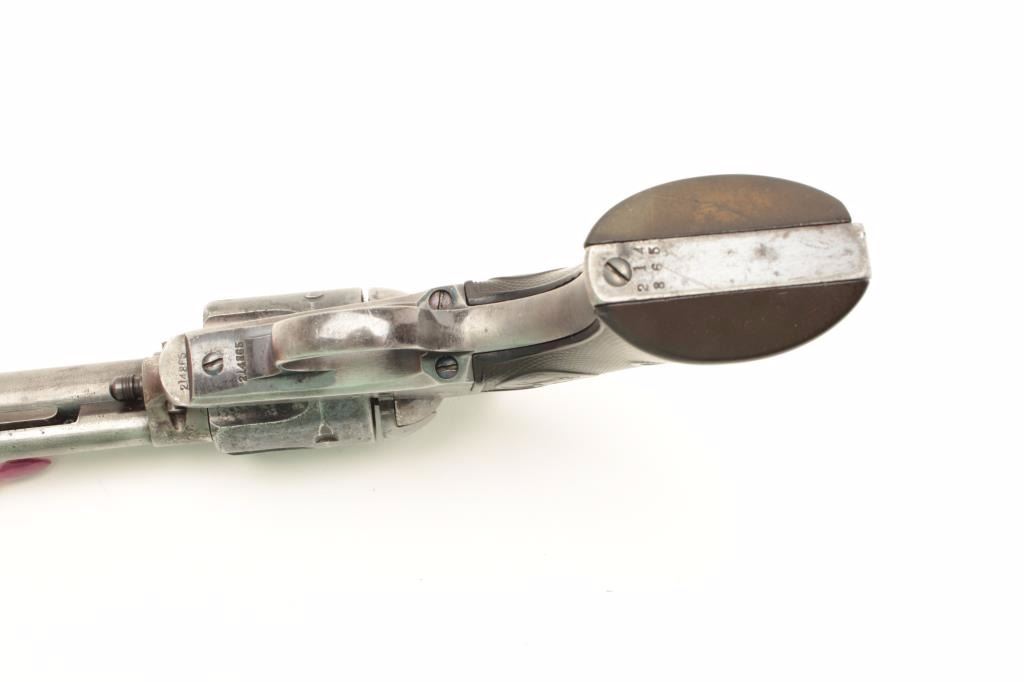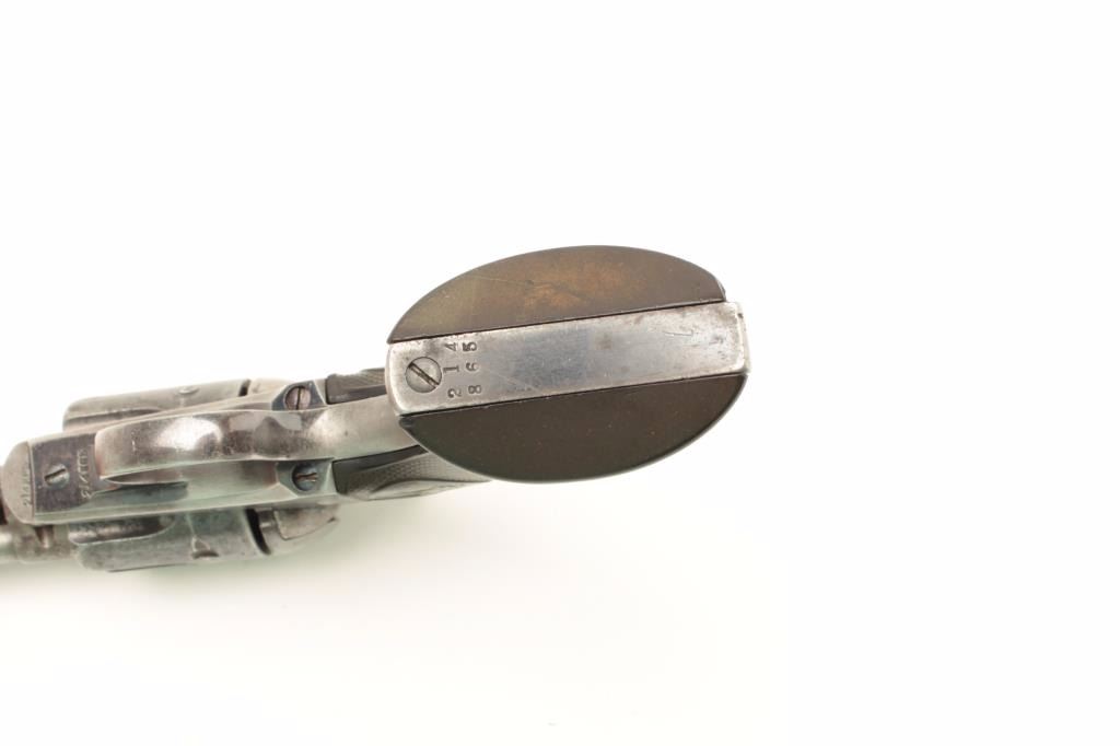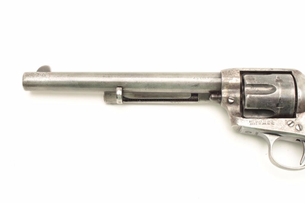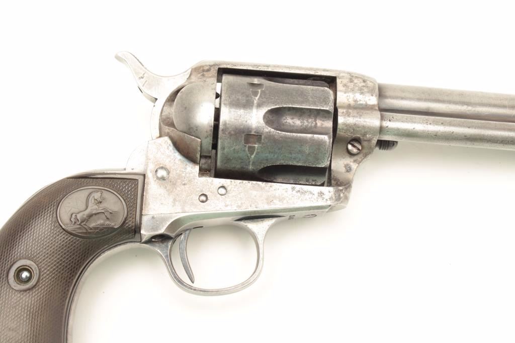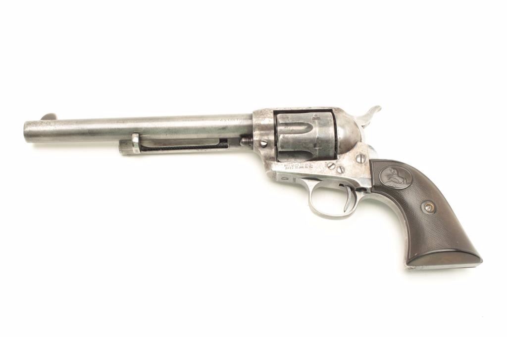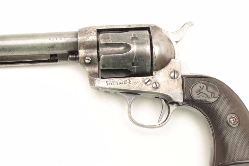 Lot 1132 Colt SAA revolver, .45 caliber, 7.5” barrel, blued and case hardened finish, checkered hard rubber