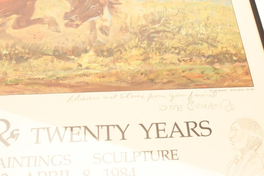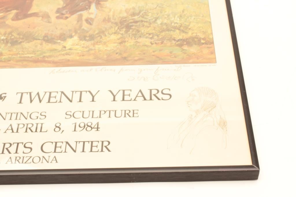 Poster for Joe Beeler 20 year exhibition and show at Sedona Arts Center; signed lower right and hand done vignette of Brave by Joe Beeler; approximately 21.75” x 21.75”. From the estate of Elmer E. Taylor. Est.: $500-$1,000.