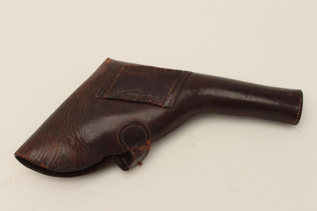 British Officer’s private purchase flap holster for Colt Single Action 5.5” barrel marked “P-2” on flap (unit or Regiment); good condition; ca. 4th quarter of 19th century; good to very good condition and very scarce! Est.: $300-$600.