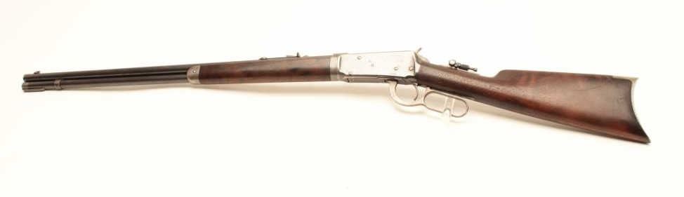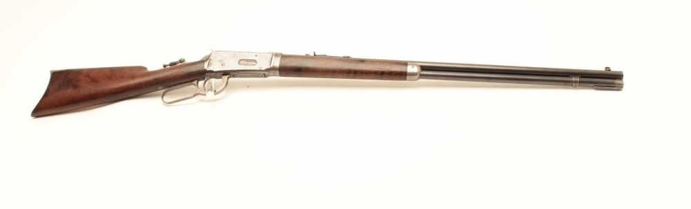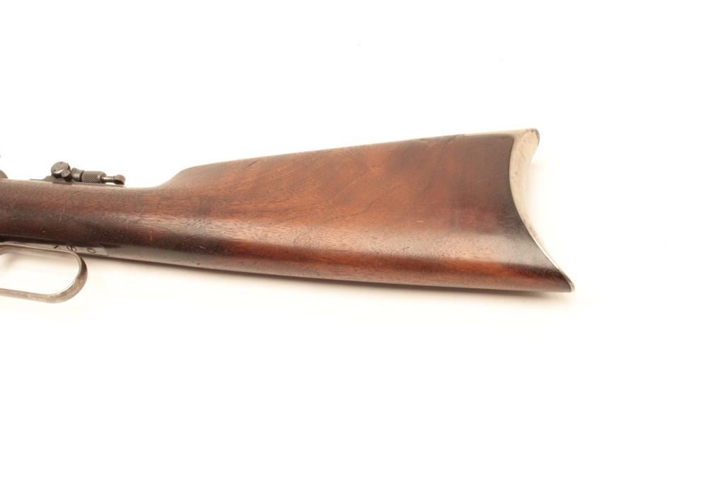 Winchester Model 1894 lever action takedown rifle, .30 W.C.F. caliber, 26” barrel, blued finish, wood stocks, adjustable Lyman tang sight, S/N 137791, in overall very good condition showing the majority of itsoriginal blued finish, good rifling in bore with scattered light erosion, crisp action, sharp markings and very good wood stocks. Accompanied by a factory letter confirming caliber, round barrel, plain trigger,takedown feature; received in warehouse on March 10, 1902 and shipped on Sept. 17, 1902 to order #157516. (C&R/No PPT). Est.: $1,400-$2,800.