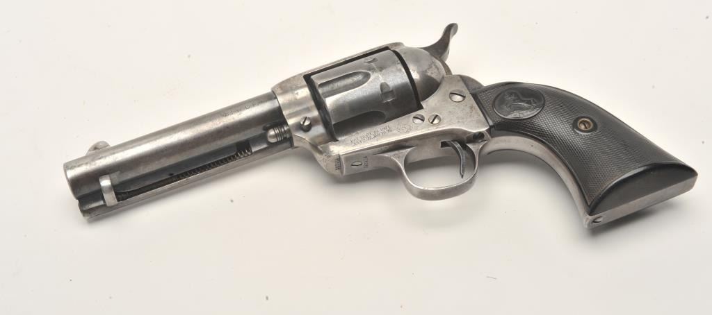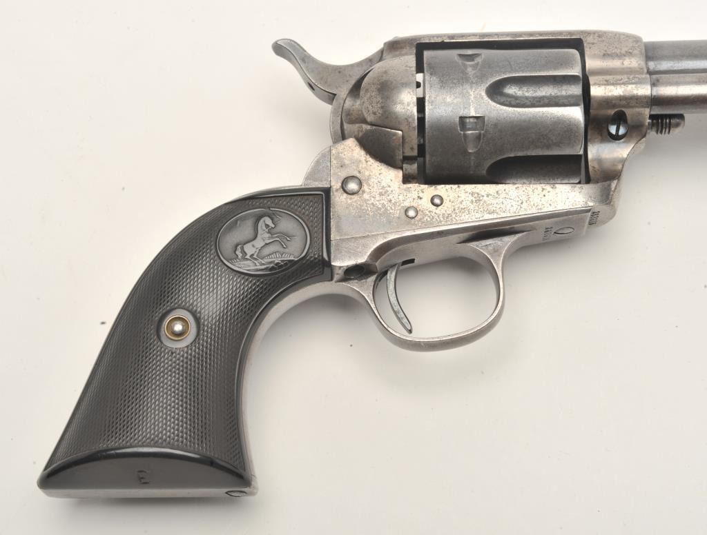 Lot 1145 Colt SAA revolver, .32/20 caliber, 4.75” barrel, blued and case hardened finish, checkered hard ru