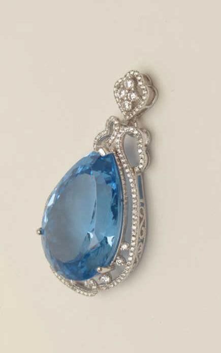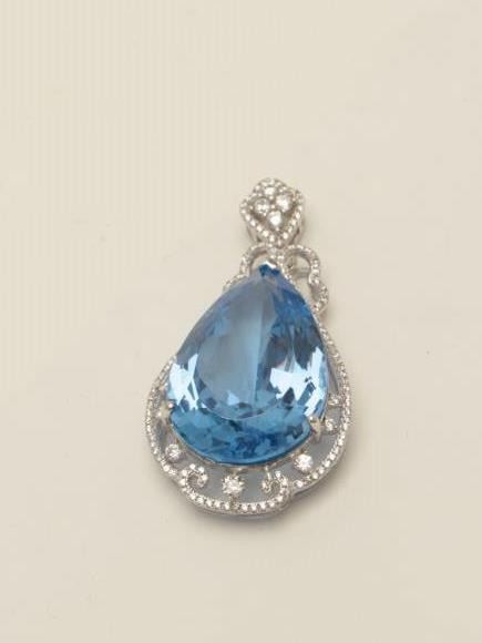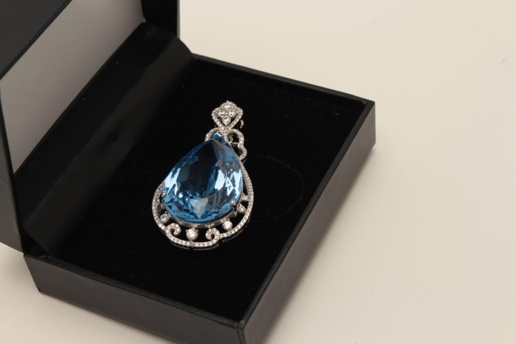 Lot 1159 One fine designer blue topaz pendant made in sterling silver with swaroski crystal. EST.$150-200