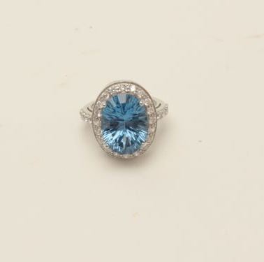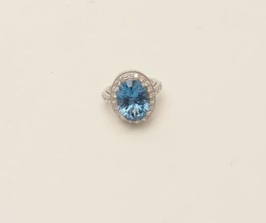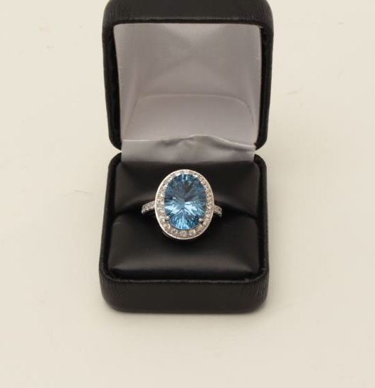One oval topaz ladies ring in sterling silver set with swaraski crystals. EST.$150-200