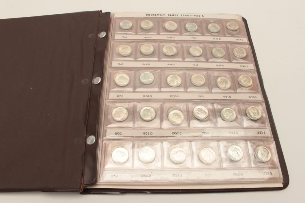 Lot 1167 Book of Roosevelt Dimes 1946-1979(s) Complete 83 coins-in book. All uncirculated, averaging MS62-6