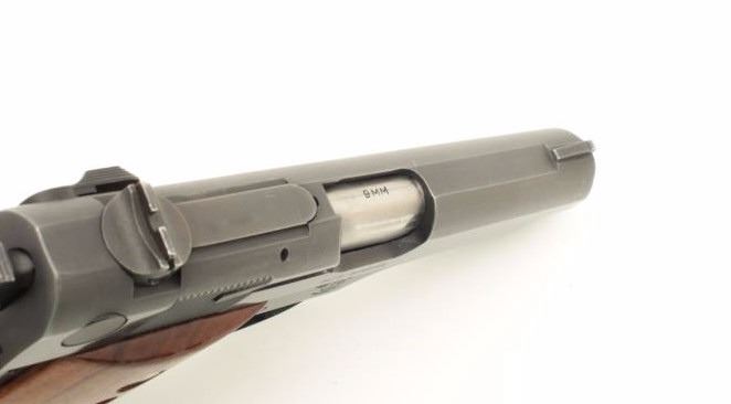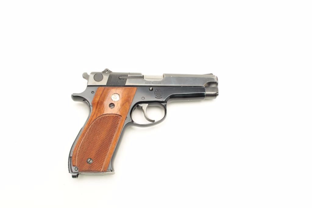 Lot 1181 Smith & Wesson Model 39-2 semi-automatic pistol, 9mm caliber, 4” barrel, blued finish, checkered w