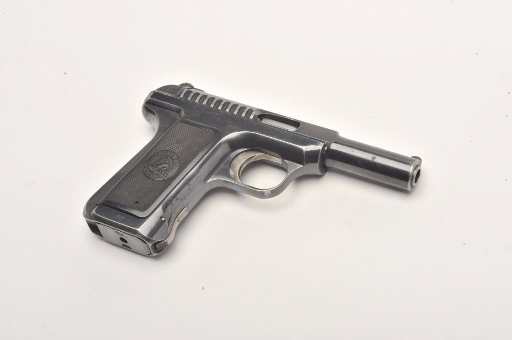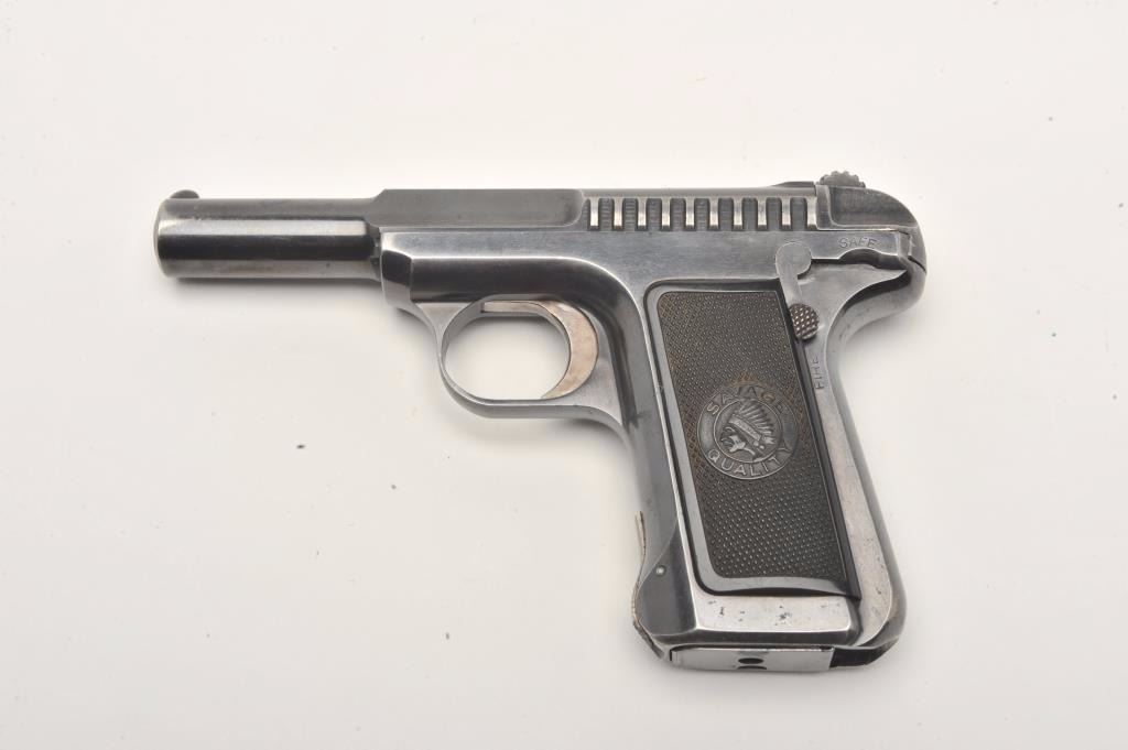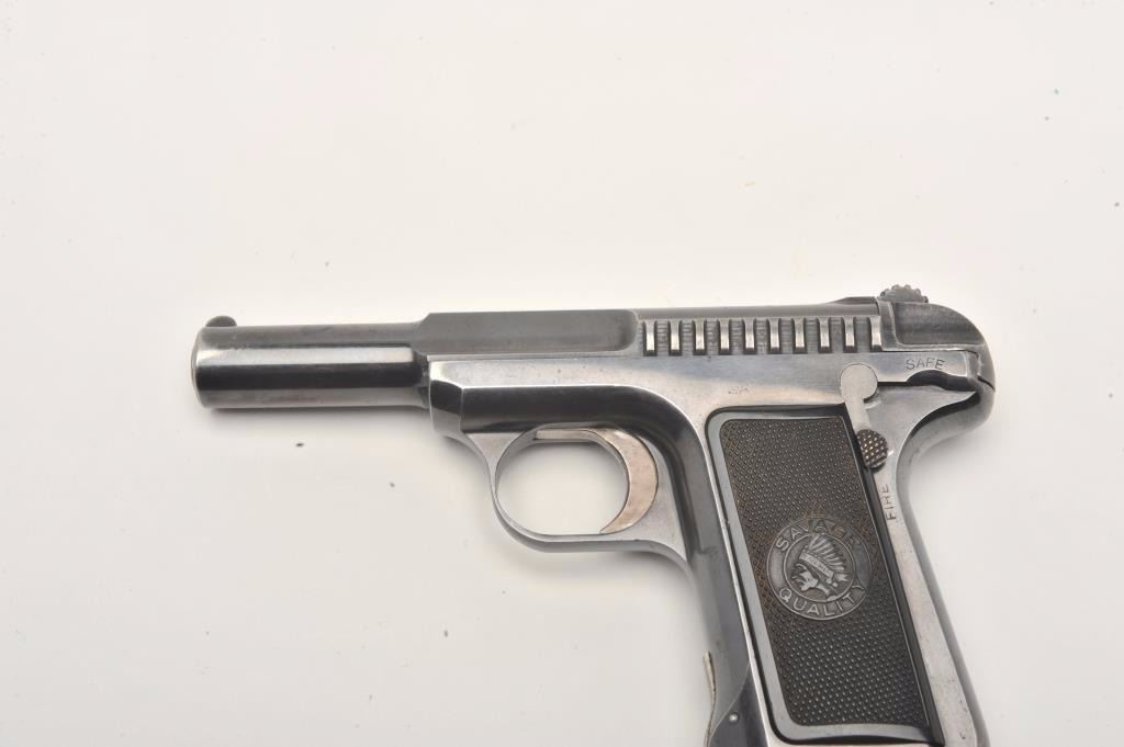 Lot 1182 Savage semi-automatic pistol, 7.65mm caliber, 3.75” barrel, blued finish, checkered black hard rub