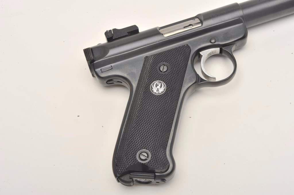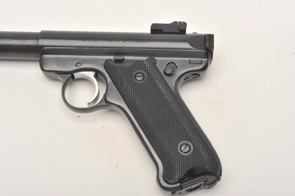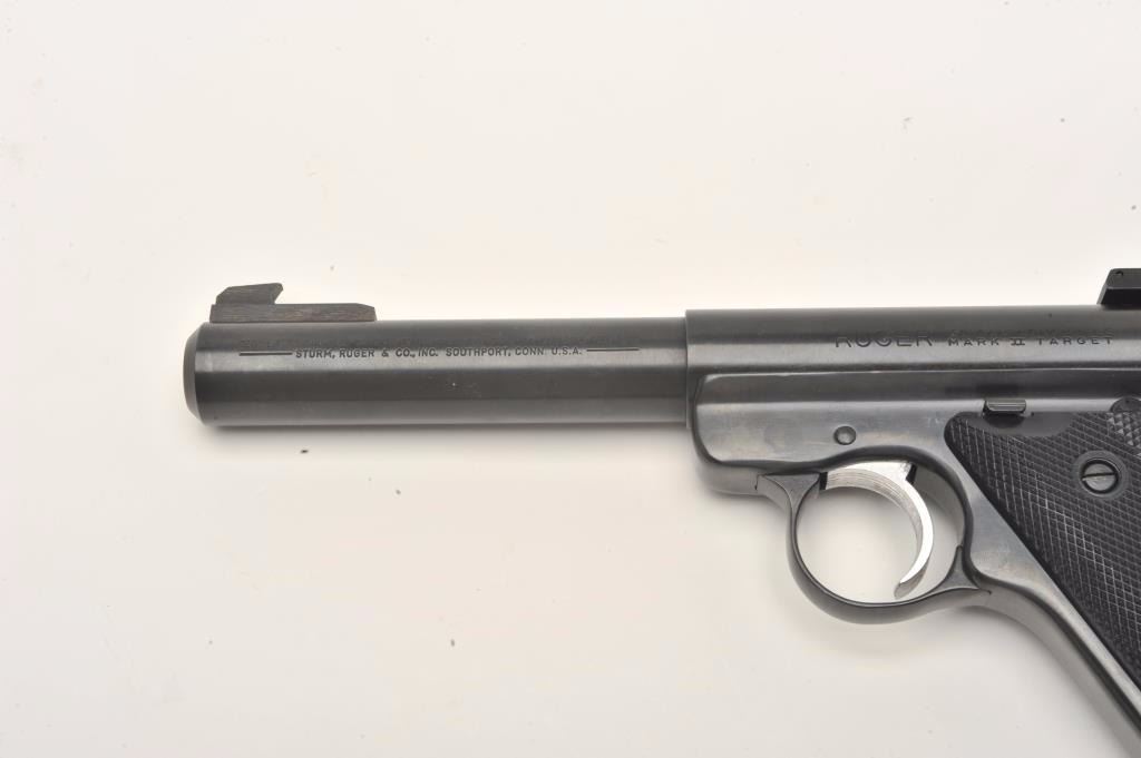 Lot 1190 Ruger Mark II Target semi-automatic pistol, .22LR caliber, 5.5” barrel, blued finish, checkered gr