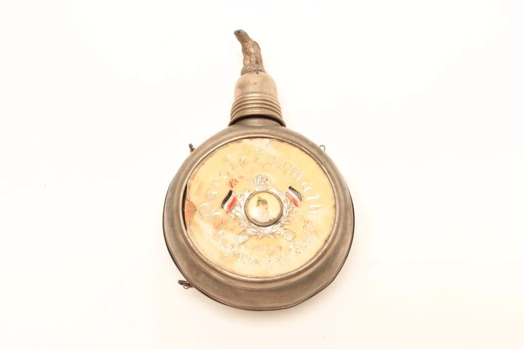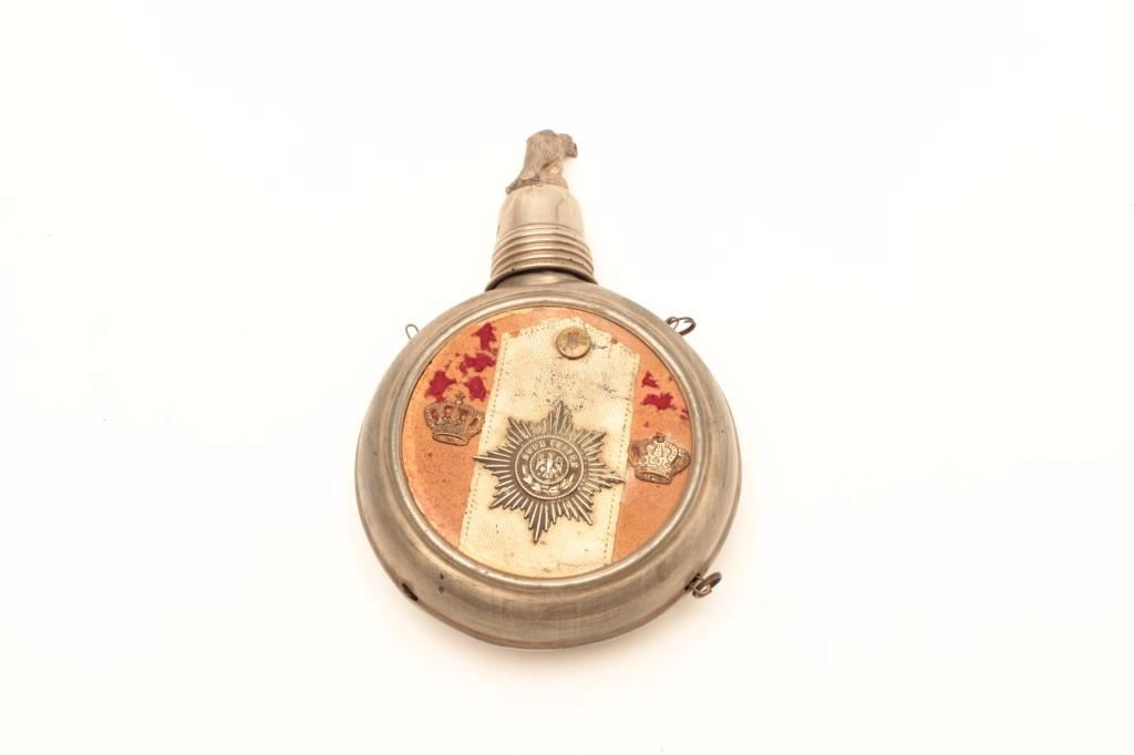 Lot 1219 Mexican flask canteen with metal eagle stopper. The canteen is in good condition with a soldier o