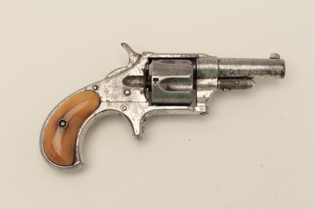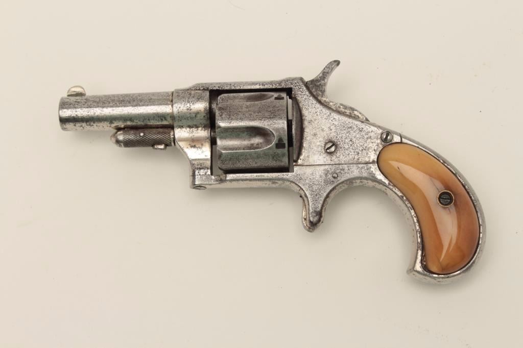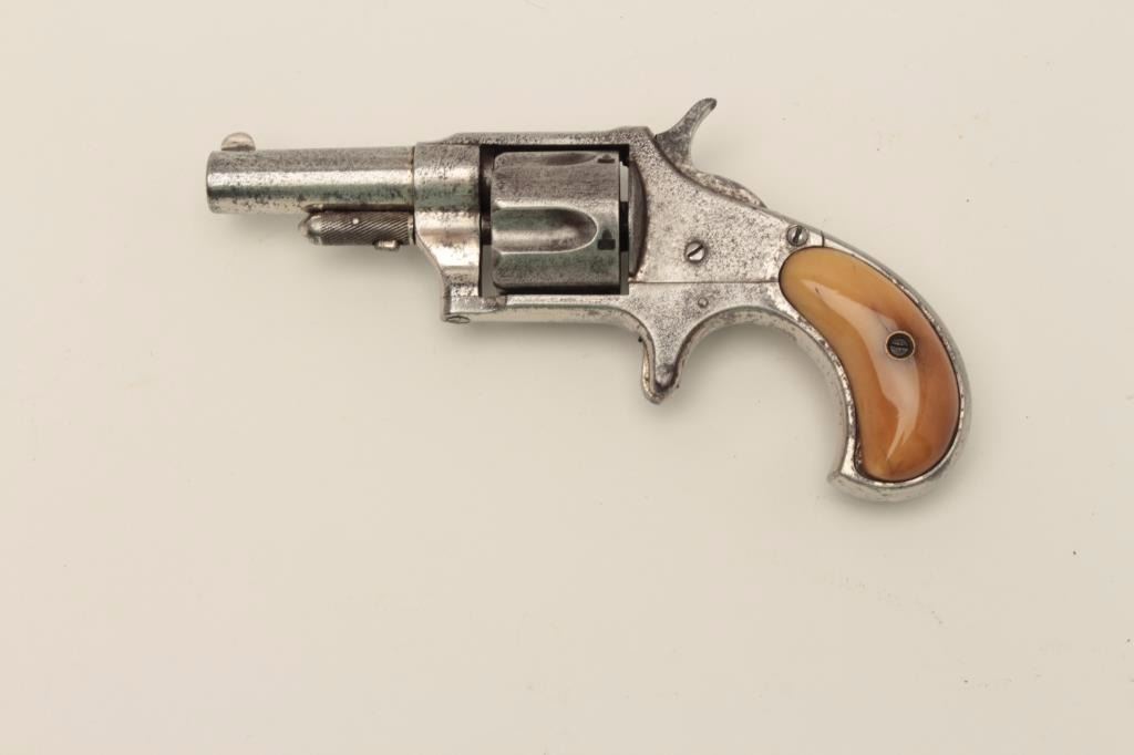 Lot 1224 Remington Smoot spur trigger revolver, .41 caliber, 2.5” barrel, horn grips, S/N 1683, in overall