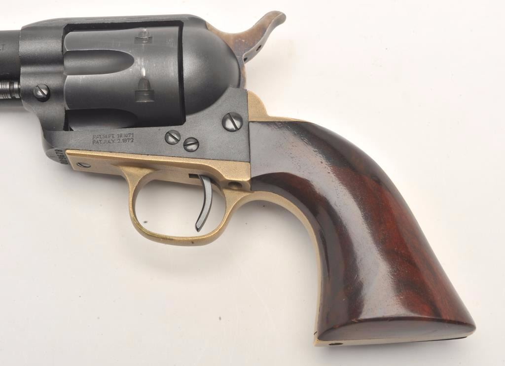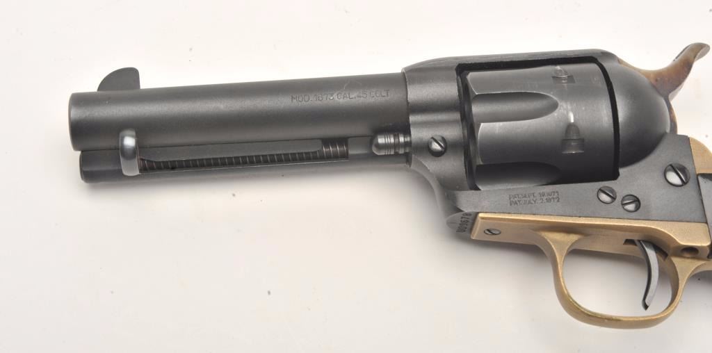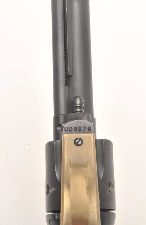 Lot 1230 Uberti copy of a Colt SAA revolver, .45 Colt caliber, 4.75” barrel, mat black finish, brass straps