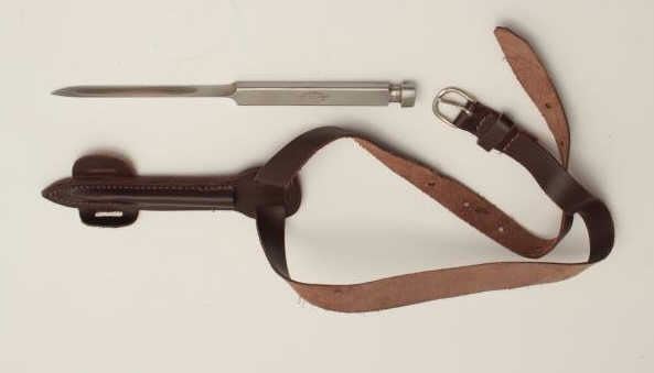Lot 1239 Cross dagger marked “H.G. Long & Co. Sheffield, Eng.” with ankle strap scabbard. James Bond era. N