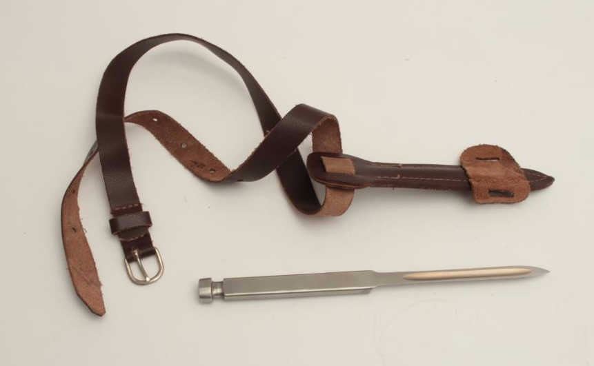 Cross dagger marked “H.G. Long & Co. Sheffield, Eng.” with ankle strap scabbard. James Bond era. No CA Sale. Est.: $140-280